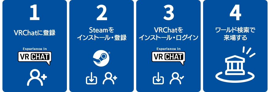 来場方法:VR機器・ゲーミングPCからはVRChat内特設ワールドにご来場いただけます。