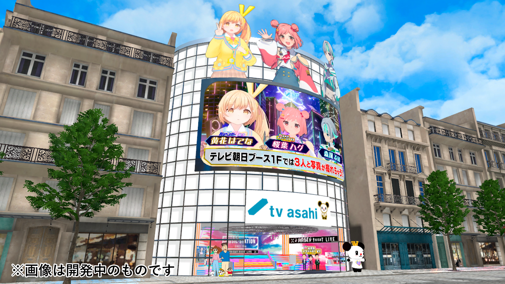 本イベントに、テレビ朝日が2度目となる出展が決定!今回は企業出展会場の1つである「パラリアルパリ」内に、バーチャルマーケット2021のパラリアル渋谷に出展したブースをリニューアルオープン。「ミュージックステーション」や「あざとくて何が悪いの?」等、テレビ朝日の番組をバーチャル空間でも味わい尽くせるコンテンツを提供いたします。さらに、VRアイドルグループ「えのぐ」の特設ライブワールドも出展。ここでしか見られないVRライブをお楽しみいただけます。