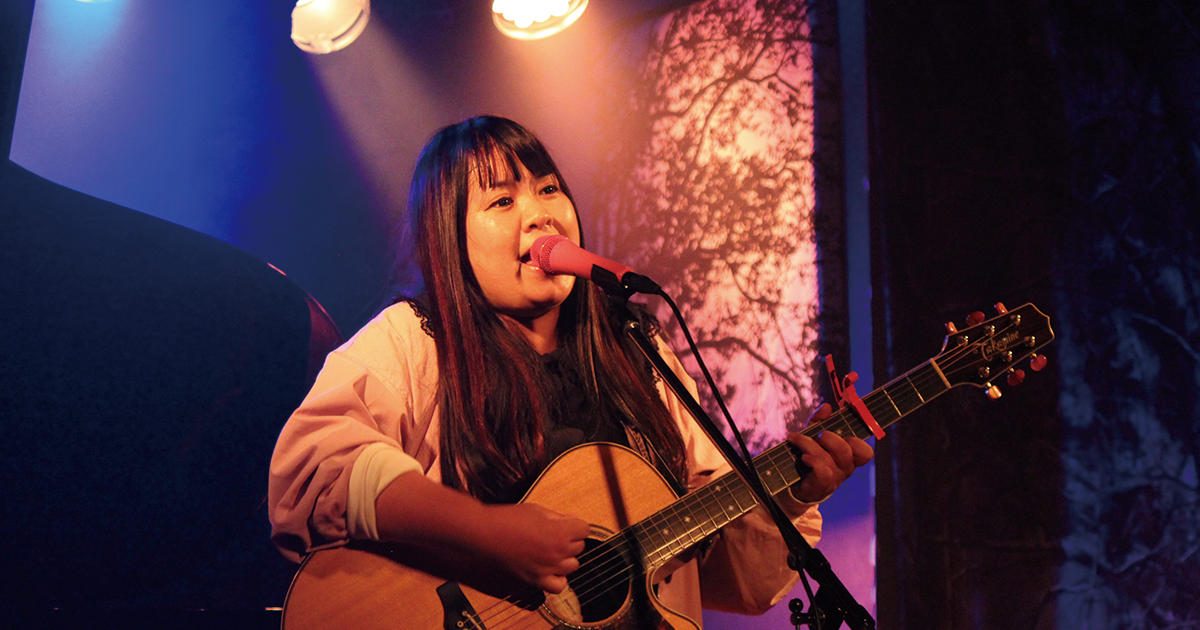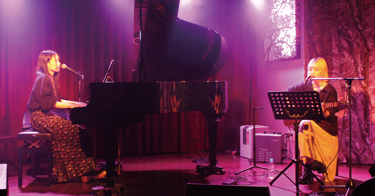 トップバッターを務めたのは、今年の3月からライブパフォーマンスを開始した姉妹ユニットAnywhere Switch。1曲目はピアノ弾き語りで姉がメインボーカルを務める「おとな」でスタート。2曲目は妹のギター演奏をメインにした「おもいあい」。少し緊張したMCでは妹のソロ活動を報告したあとは、戦争や争いが少しでも減って欲しいという願いを込めた「この果てに」を披露。その後も、決められたルールの中で生きていくジレンマを歌にした「Life」や、2人の伸びやかな歌声が心地よいピアノバラード「茜色」を披露しパフォーマンスを締めくくった。