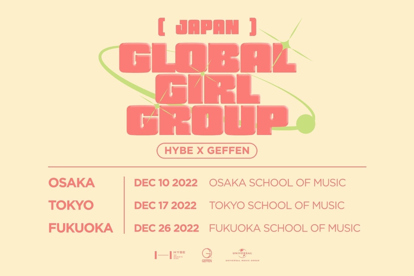 JIKEI COMグループの東京スクールオブミュージック&ダンス専門学校(TSM)と姉妹校が、今やワールドスターとなったBTSが所属する韓国のエンターテインメントライフスタイルプラットフォーム企業「HYBE」のアメリカでの拠点事務所「HYBE America」のオーディションを開催。アメリカのユニバーサル ミュージック グループ傘下レーベル「GEFFEN」と手を組み、全米でデビューするガールズグループのメンバーとなるポテンシャルを秘めた才能の卵の発掘を目指します。