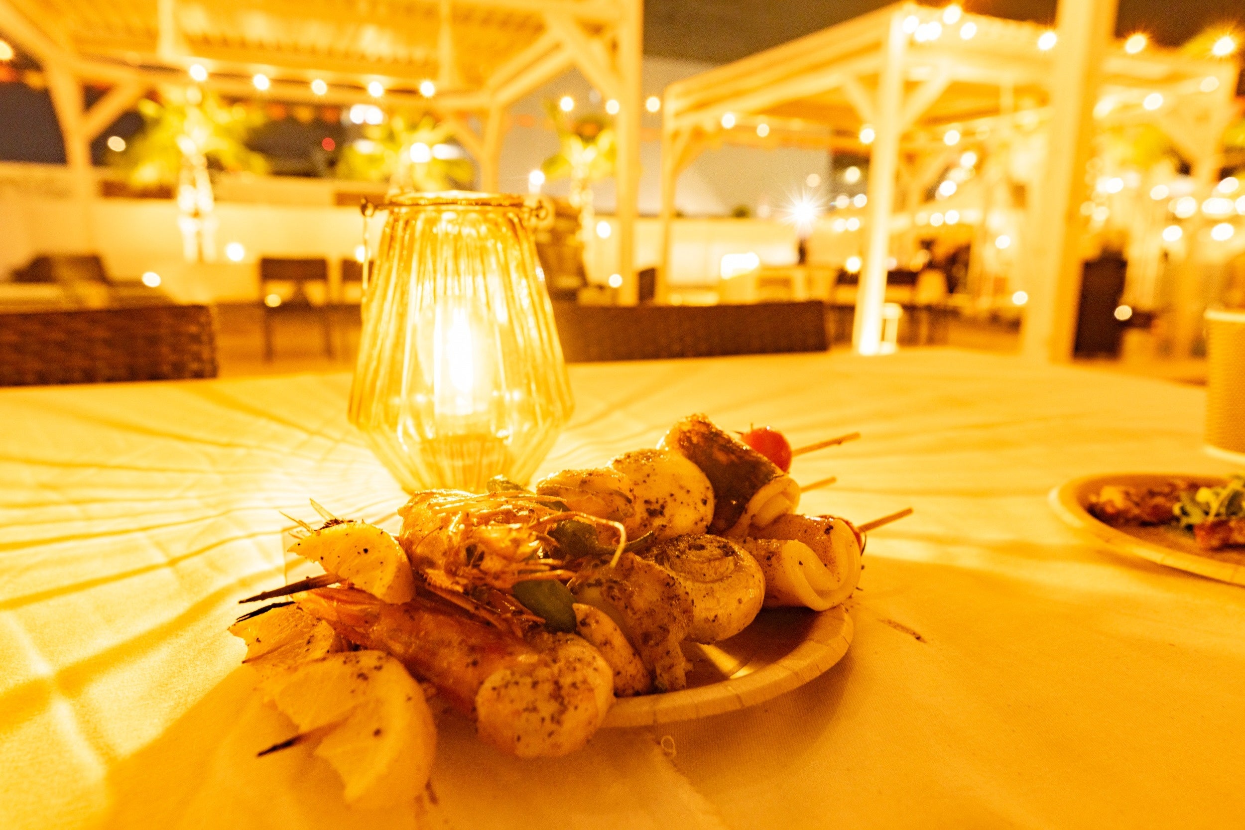 イベントのスポンサーであるglo™の世界観を表現した野外の開放感ある特設会場では、陽が落ちて赤く美しく染まる夕暮れ時の海や星が輝く夜空など、移ろう時間とともにさまざまなムードを楽しめたほか、記念撮影ができるテントやキャンドル、ライトを配したスタイリッシュなフォトスポット、色鮮やかなライトが浮かぶプール、揺らめく炎が印象的な焚き火スペースなども用意されており、会場各所ではアーバンリゾートな体験を楽しむ来場者の姿が数多くみられました。