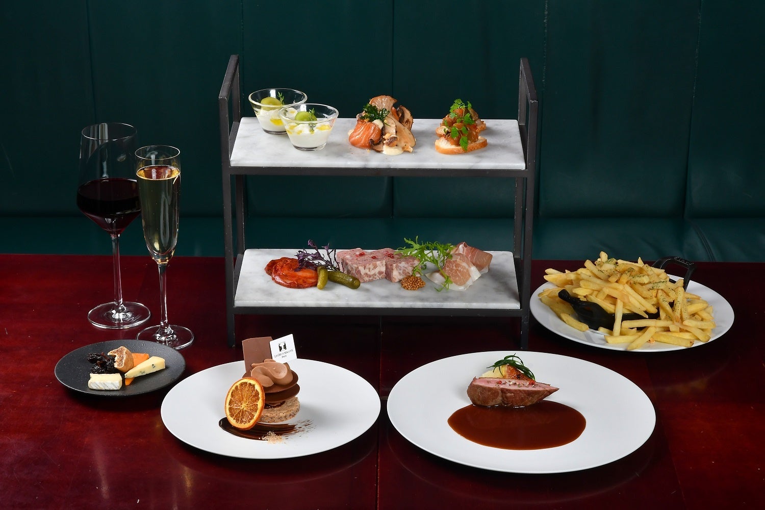 重厚感のある大理石のティースタンドで提供するオードブルに加え、メイン料理、デザートがセットになった、女子会にオススメのイブニングハイティー。スパークリングワインを含むフリードリングが付いたお得なプランです。19世紀のパリを感じるクラシカルな空間で優雅なひと時を。