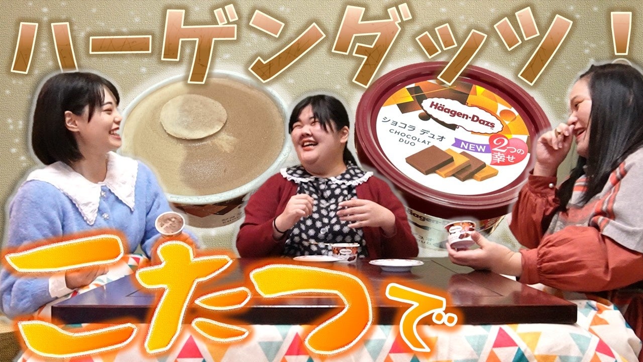「ぼる塾」メンバーがこたつで、ミニカップ『ショコラ デュオ』を食べながら、今年を振り返る様子を公式YouTubeチャンネルでも公開されています。