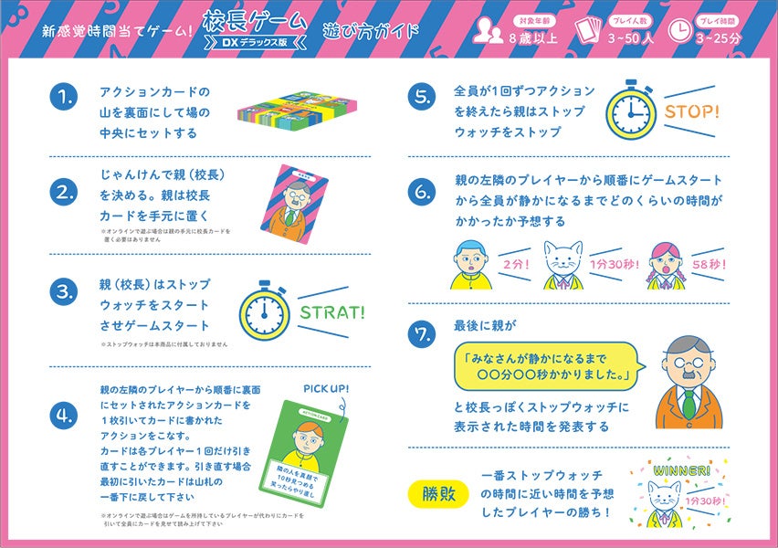 株式会社MOGURA ENTERTAINMENT(本社:東京都新宿区、代表取締役:野村岳史)は、新感覚!時間当てカードゲーム『「校長ゲーム」みなさんが静かになるまで◯◯秒かかりました DXデラックス版』を発売致します。旧作はYoutubeでのプレイ動画の総再生回数が100万回を超えており多くの方に楽しんでいただける作品となりました。今作ではアクションカードを33枚増量し、幅広い内容のアクションカードを収録しています。