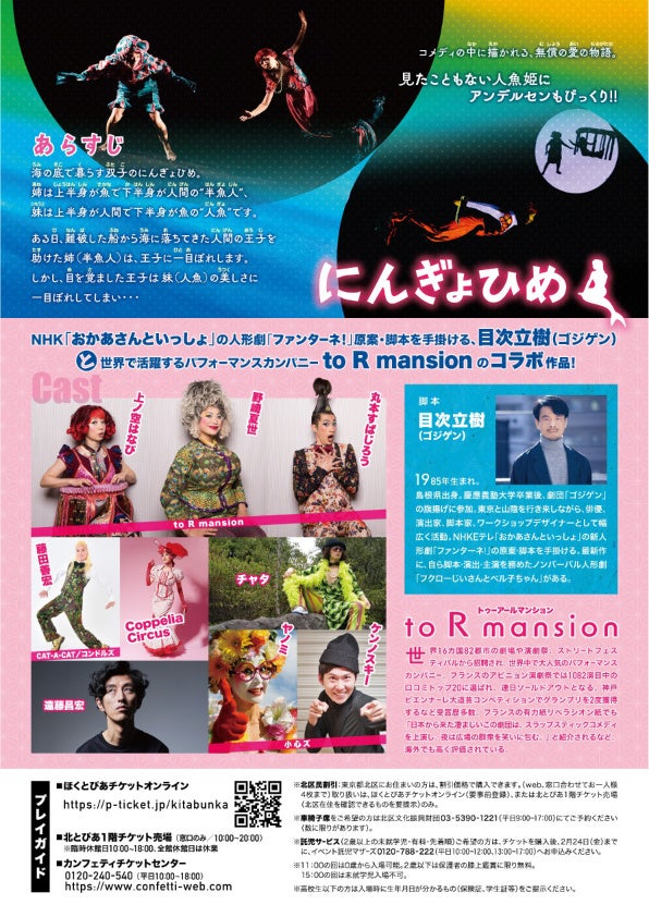 (公財)北区文化振興財団主催、to R mansion『にんぎょひめ』が2023年3月5日 (日)に北とぴあつつじホール(東京都北区王子1-11-1)にて上演されます。チケットはカンフェティ(運営:ロングランプランニング株式会社、東京都新宿区、代表取締役:榑松 大剛)にて12月9日(金)10:00よりチケット発売開始です。