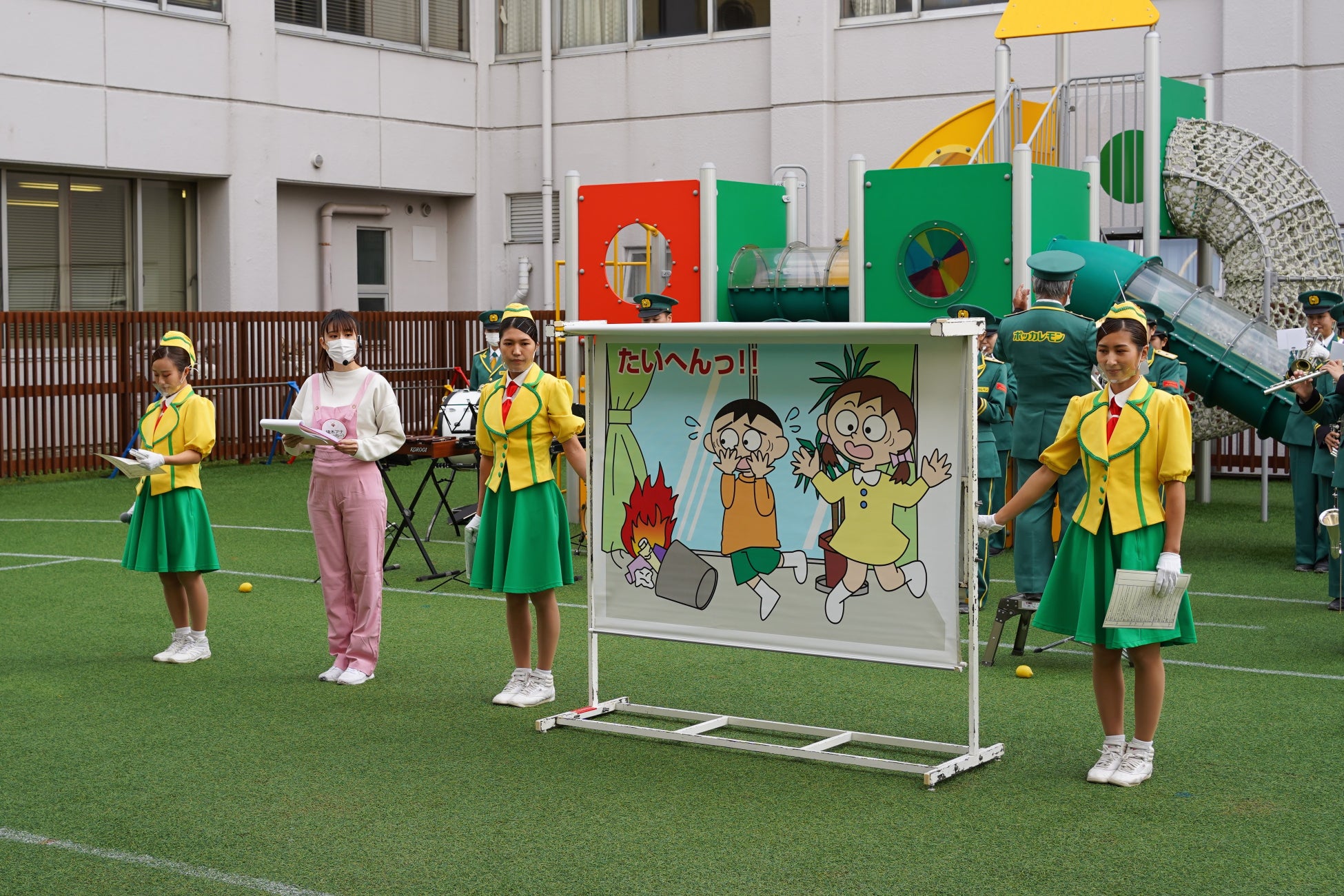 ■PRコーナー:消防車の展示、起震車体験コーナー、ちびっこ防火服試着、燃料電池自動車MIRAIの展示、防災ファミリュックの紹介、ウルフィキャラバン等