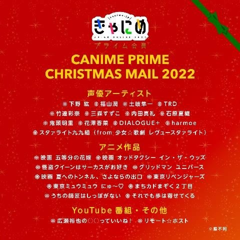 ・キャンペーン特設ページURL:https://prime.canime.jp/christmas2022/?utm_source=release&utm_medium=referral&utm_campaign=PrimeXmas1208