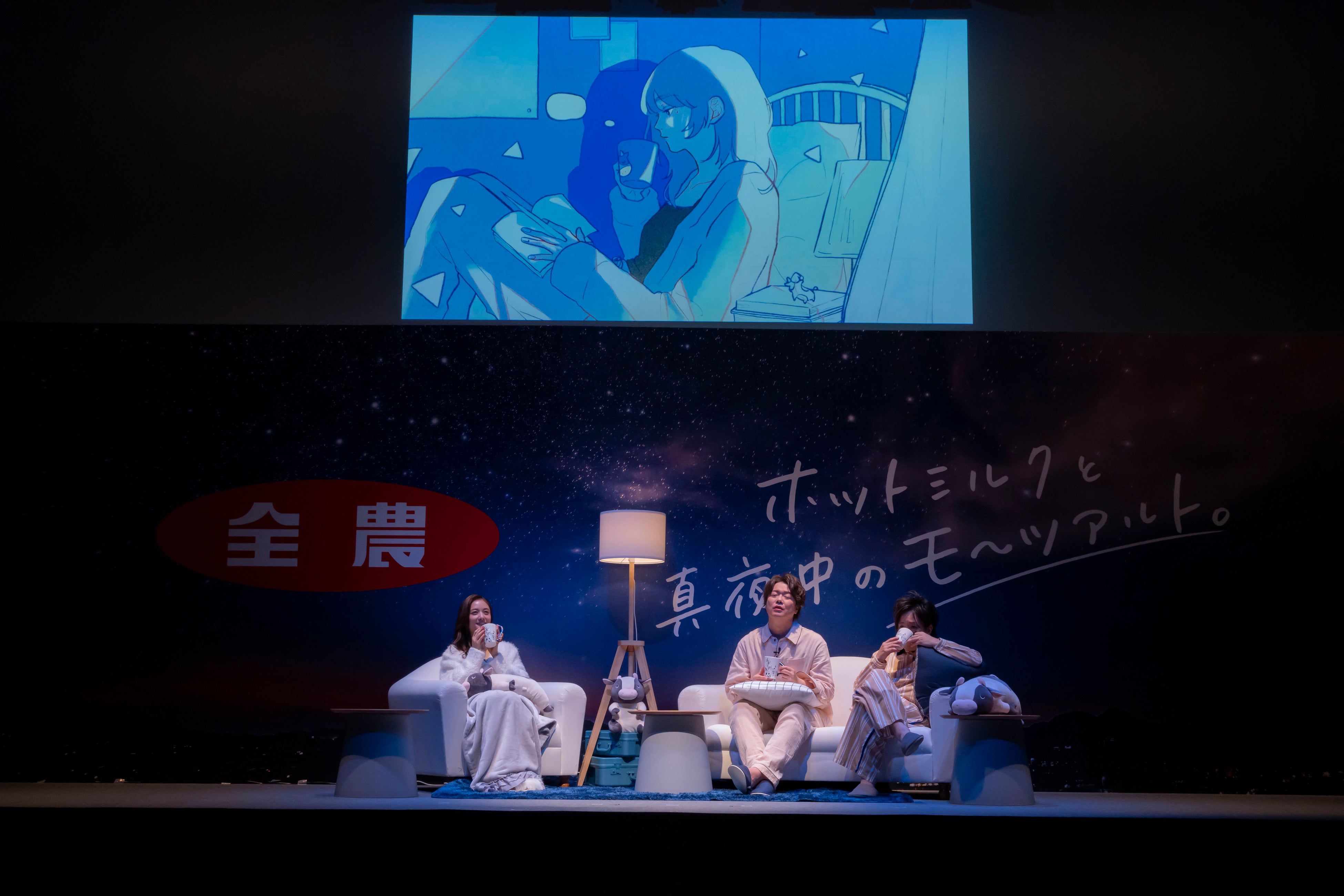 イベント終盤では、「JA全農 ホットミルクと真夜中のモ~ツァルト」にちなんで、睡眠や牛乳に関するトークセッションを実施しました。