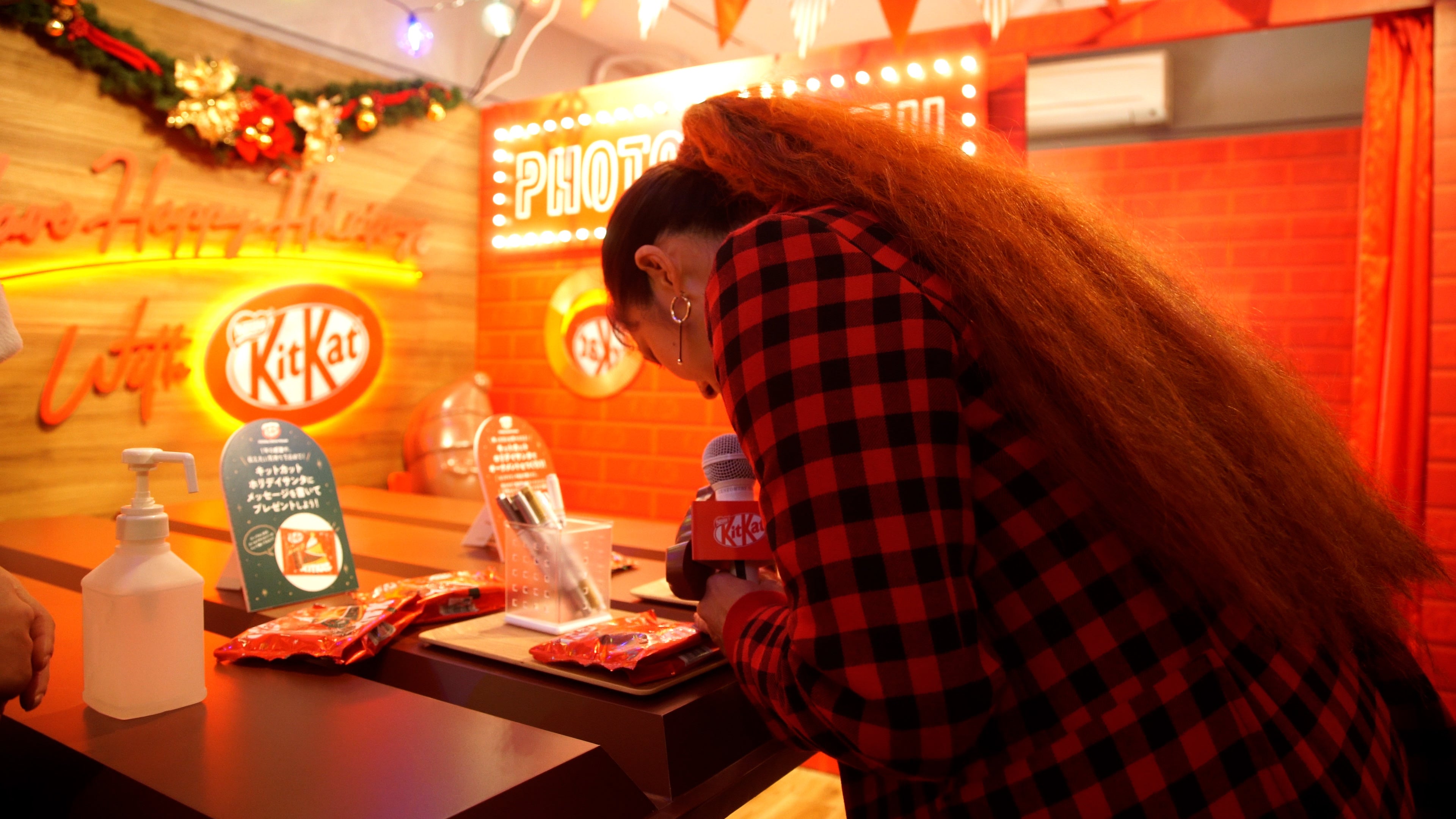 AIさんは「子供に戻った気分で好きな場所を開けちゃいます」とアドベントカレンダーを楽しみながらオープンしていました。さらに、「キットカット ホリデイサンタ」のパッケージに手書きのメッセージを寄せる場面も。「何を書こうか悩むな」と迷った結果、「みんながハッピーになりますようにという思いを込めました」とコメントし、「I LOVE you!! ハッピー to everybody」というメッセージを書いてくださいました。AIさんのメッセージ入り「キットカット ホリデイサンタ」はハウスにてオープン期間中、飾られています。