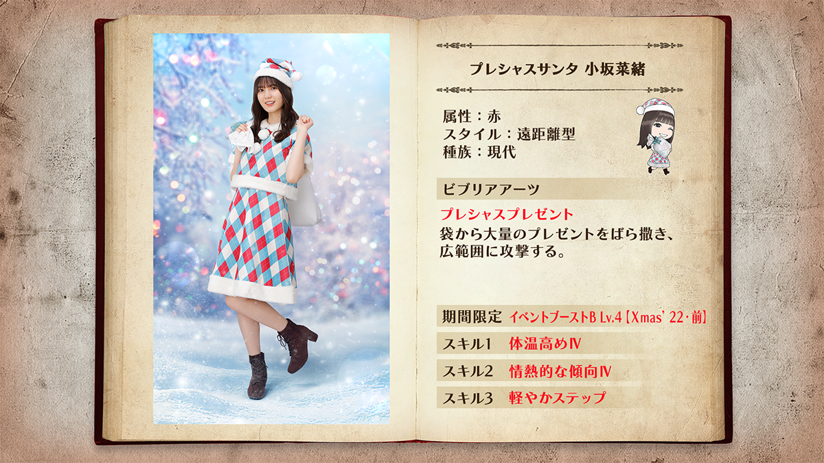 株式会社ソニー・ミュージックソリューションズ(本社:東京都港区、代表取締役:志田忠彦)は、スマートフォンゲームアプリ 『日向坂46とふしぎな図書室』 (略称:ひな図書)にて、期間限定イベント「HinaSanta is Coming to Town ~ひなくり2022イブ~」を12月12日(月)から開催いたします。