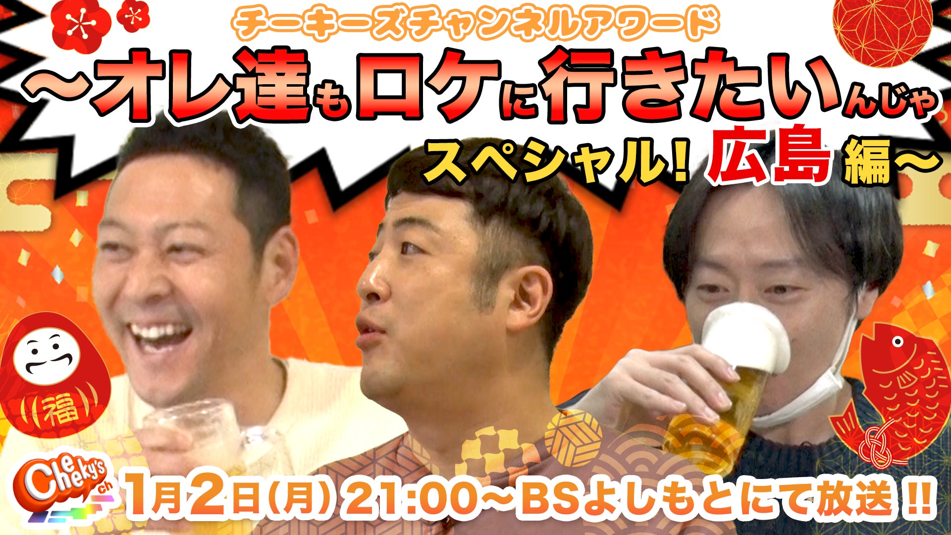 BSよしもとで毎月最終日曜日に放送している番組「チーキーズ チャンネル アワード」が、お正月特別編として、1月2日(月)よる9:00から「チーキーズ チャンネル アワード 〜オレ達もロケに行きたいんじゃスペシャル!広島編〜」を放送いたします。