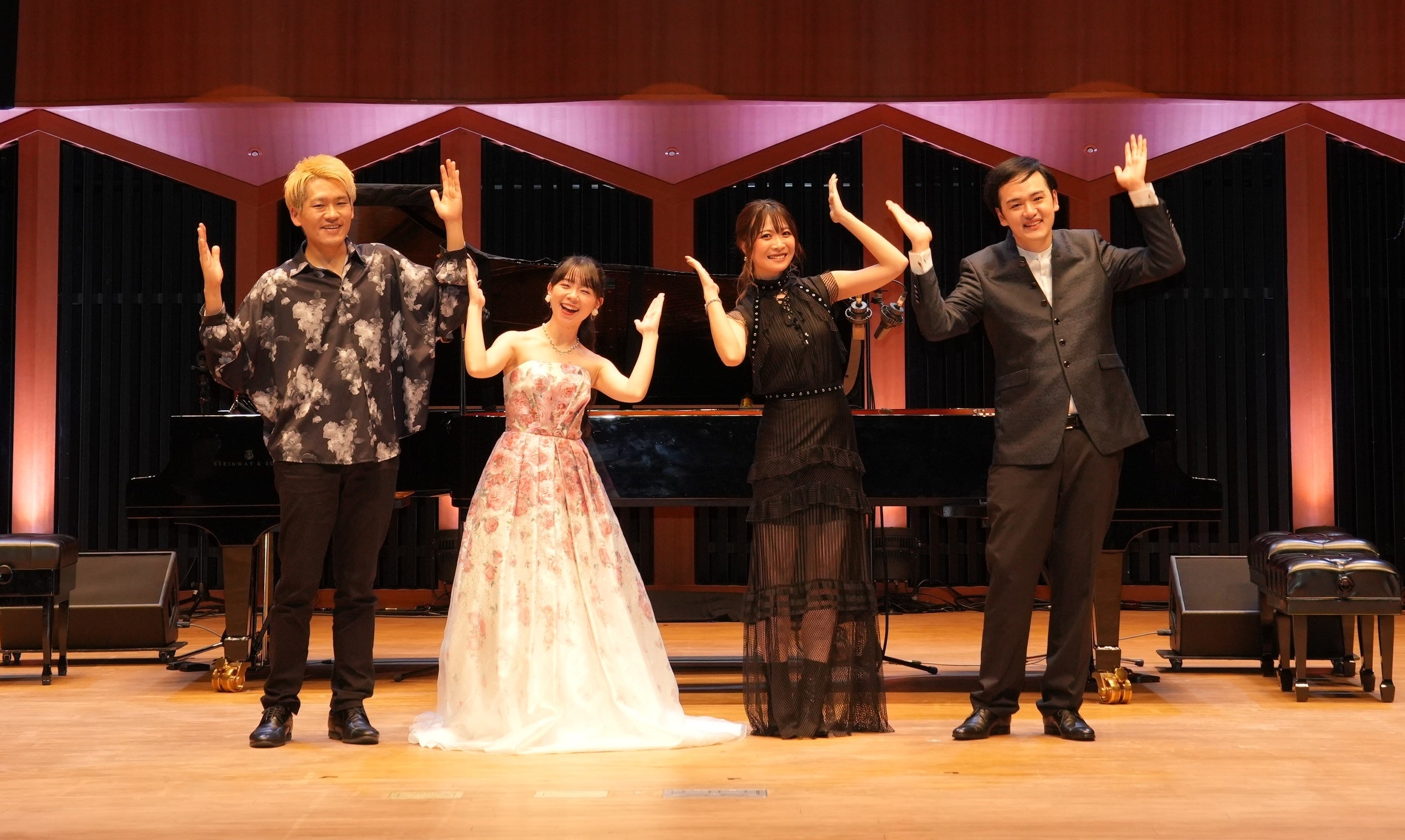 昨年に引き続いての出演となるAnimenzさん、みやけんさんに加え、今年はアニメキャラのモノマネをしながらの弾き語りが話題のマルチピアノタレントまなまるさん、そしてジャンルに縛られない圧倒的な歌唱力と伸びのあるハイトーンヴォイスで国内外のリスナーを魅了する実力派女性シンガーMay’nさんがゲストボーカルとして出演し、人気ピアニストたちのピアノ演奏と実力派シンガーの歌唱という夢のコラボが実現。さらに今年は、全世界での配信に加え中国動画配信サイト「ビリビリ」での配信も行い、響ホールとオンライン配信合わせて1200名近くの方がライブを楽しみました。