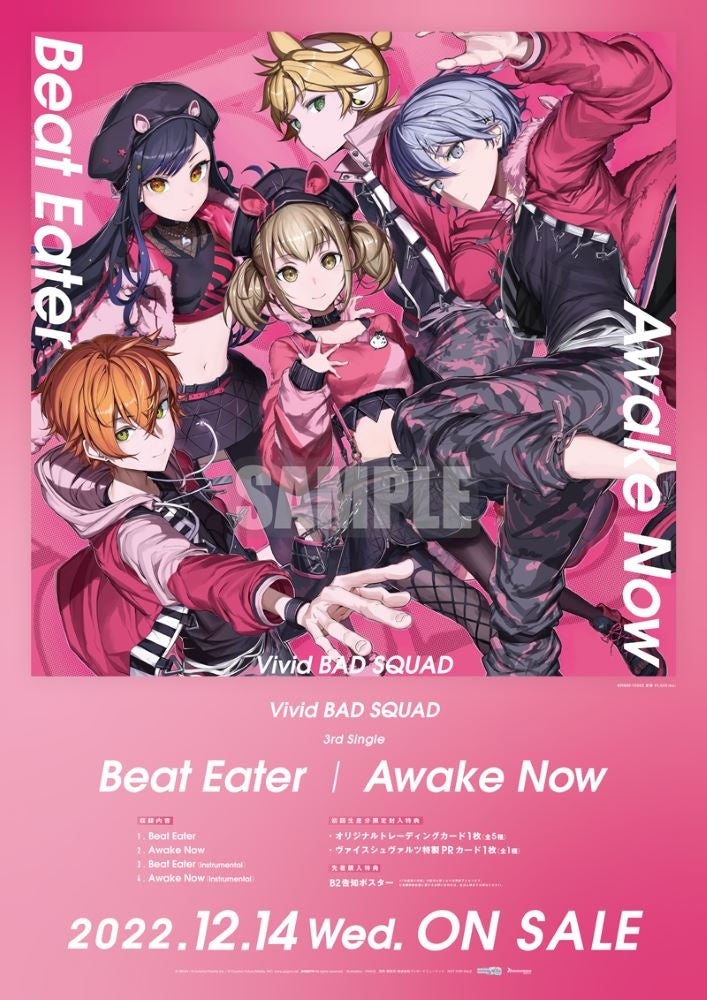 iOS/Android向けリズム&アドベンチャー『プロジェクトセカイ カラフルステージ! feat. 初音ミク(以下、プロジェクトセカイ)』より、実力派ストリートユニット “Vivid BAD SQUAD”の書き下ろし楽曲を収録した3rd Single「Beat Eater/Awake Now」(発売元:ブシロードミュージック)が本日発売。