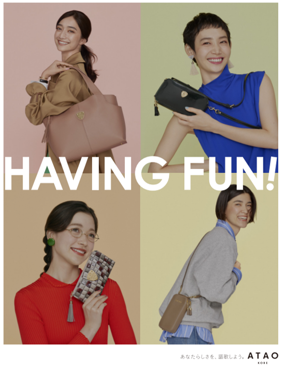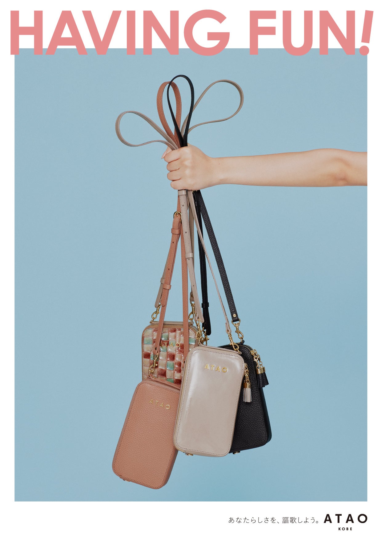 ATAOは、神戸芦屋の閑静な住宅街にある革小物の専門店から始まり、数年前より話題のドラマや映画で女性俳優が使用して話題となった、働く女性からママまで幅広い年齢層に人気のブランドです。今回のブランドプロモーションを通じて、クラシックでありながらも時代の風を取り込む斬新なモノづくりにこだわった商品の魅力を伝え、新たなファンの開拓を目指してまいります。