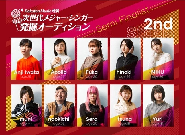 楽天グループ株式会社が運営する定音楽聴き放題サービス「Rakuten Music」は、開催中の「Rakuten Music 所属 第1弾 次世代メジャー・シンガー発掘オーディション」において、新しい才能を発掘する「育成・選抜プログラム」として実施する「セミ・ファイナルラウンド」、「ファイナルラウンド」のうち、10名の候補者から5名を選抜する「セミ・ファイナルラウンド」の人気投票を、本日より開始しました。