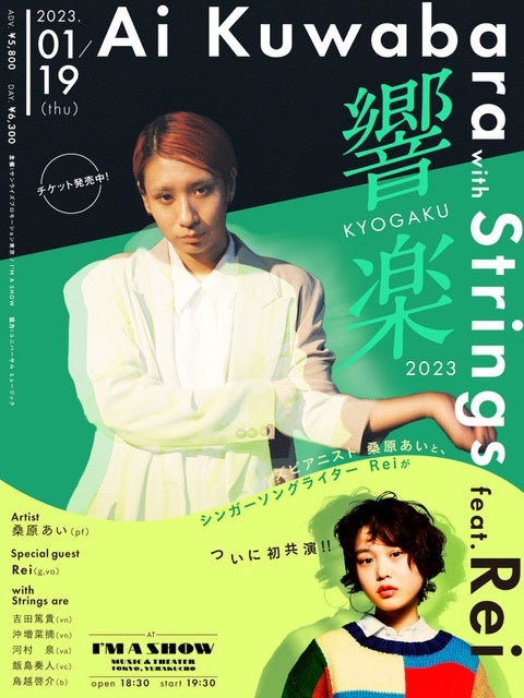 2023年1月19日(木)に、有楽町・I’M A SHOW(アイマショウ)で、桑原あいウィズ・ストリングス feat. Rei「響楽-KYOGAKU-2023」を開催します。