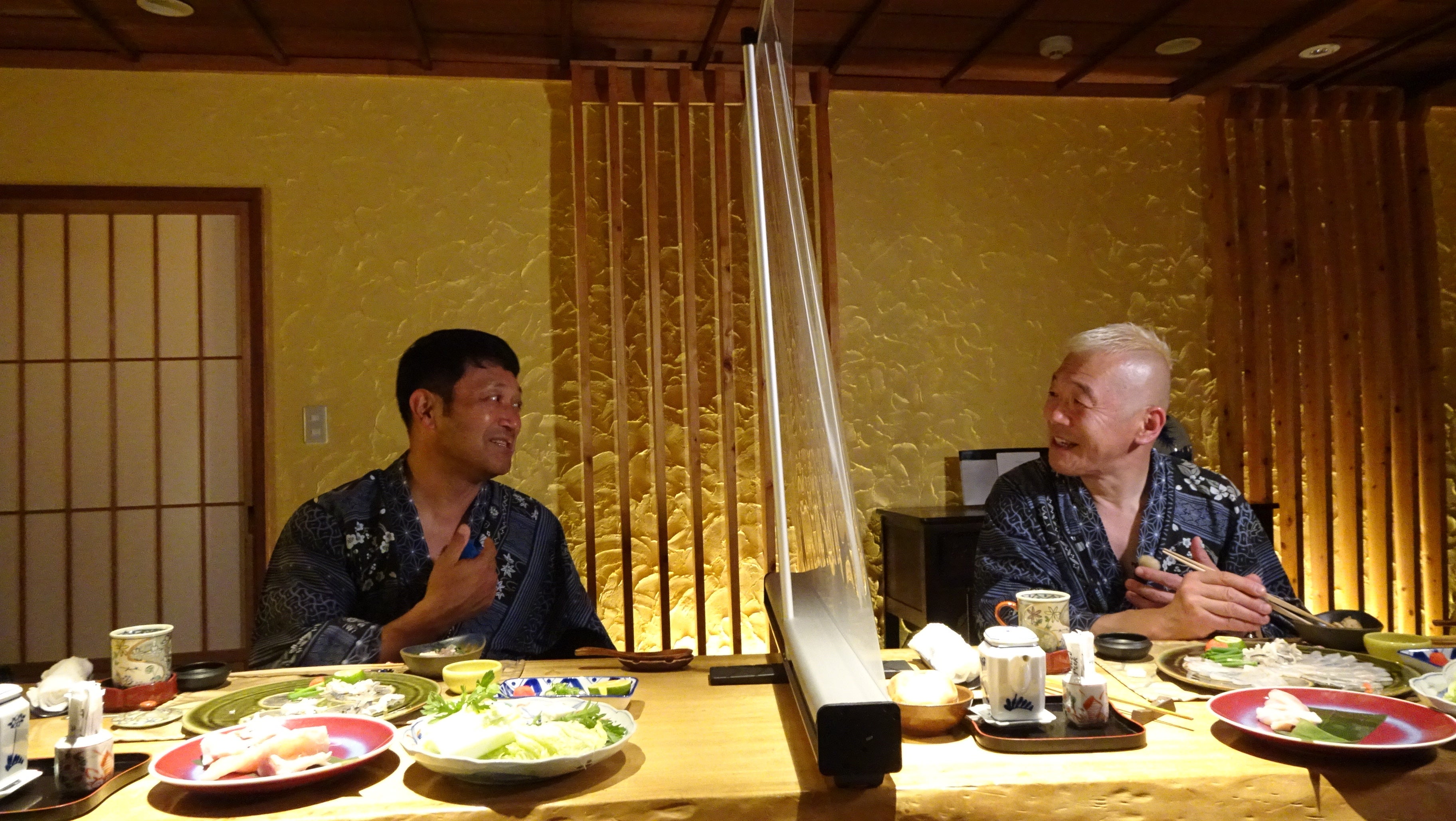 旅の終盤では渥美半島に新たに生まれた温泉地「伊良湖温泉」を楽しむことができる宿「角上楼」を訪れます。大正時代から残る建物はほとんど当時のままで、田原市で初めて国の登録有形文化財に指定されました。「うわ!すっごい雰囲気!」歴史を感じる佇まいにワクワクも最高潮。旅の疲れを癒します。最後は角上楼名物の「天然とらふぐ」のフルコースを堪能。お酒も進み、話題は「今後の展望、やりたいこと」 に。独自のスタイルでそれぞれ芸能界を生きてきたふたりが語る夢とは?
