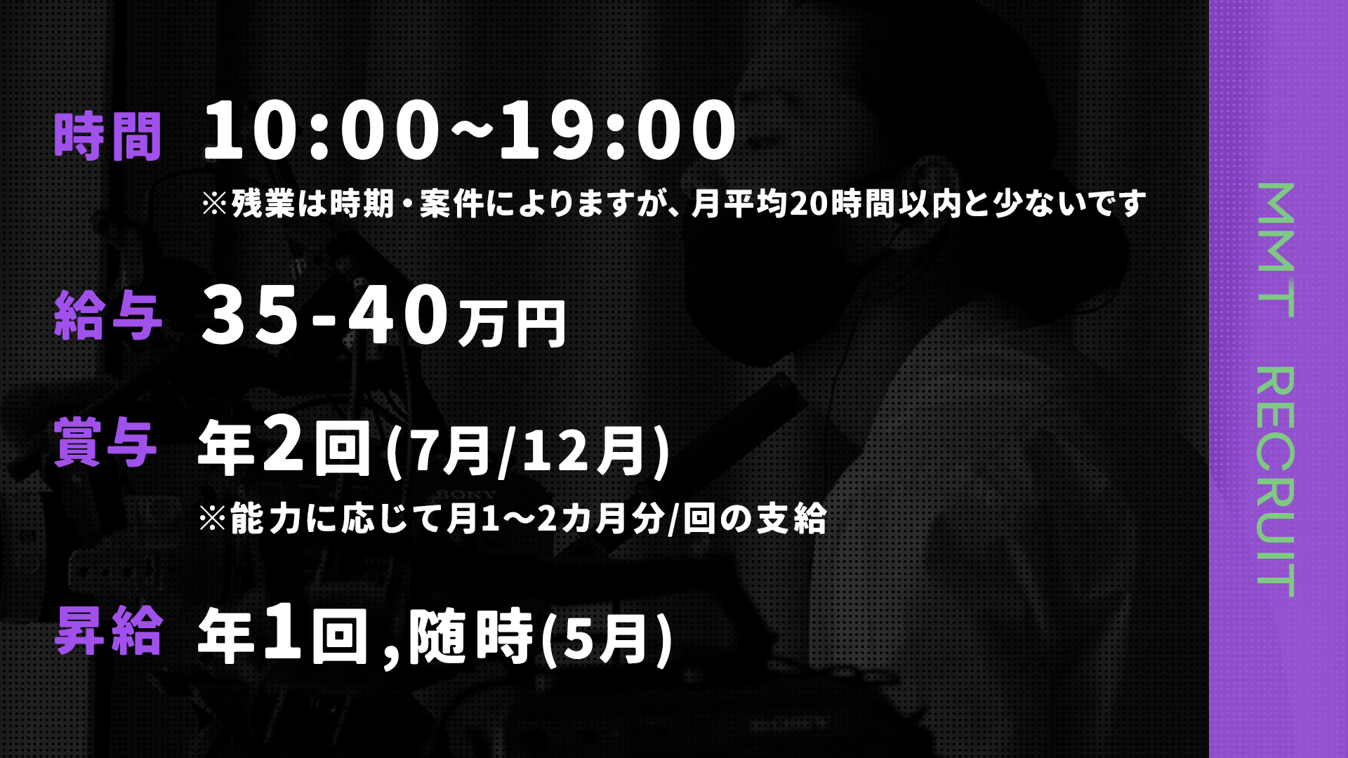 株式会社MMTは、MMTは、XR LIVE・ AFTER MOVIEからドキュメンタリーまでを手がける次世代プロダクション。アフタームービーやドキュメンタリー、LIVEシューティングを追求する事業。