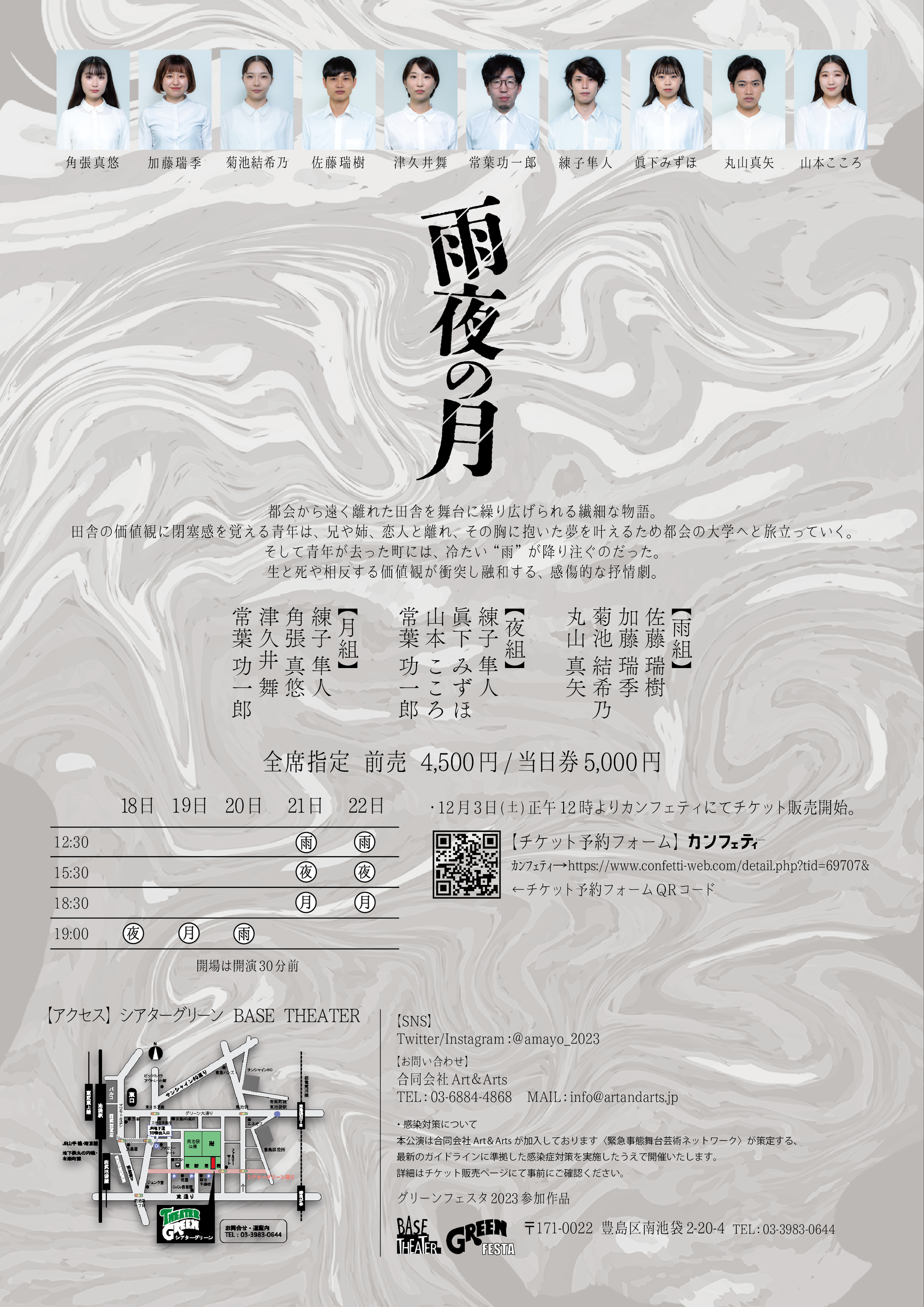 合同会社Art&Arts(代表:山崎聡一郎)主催、舞台『雨夜の月』が2023年1月18日 (水) ~2023年1月22日 (日)にシアターグリーン BASE THEATER(東京都豊島区南池袋2-20-4)にて上演されます。