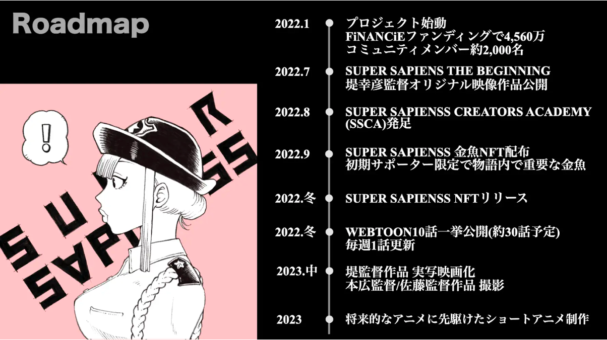 FiNANCiEでのトークンを使用したコミュニティづくりをスタートに、俳優オーディション、コミュニティのメンバーを主体とした『SUPER SAPIENSS THE BEGINNING 』のジャパンツアー、そして今スタートしている縦読み漫画のWEBTOON、NFTプロジェクト等の様々な要素を絡めてエンターテイメントの常識を覆していきたいと思っております。