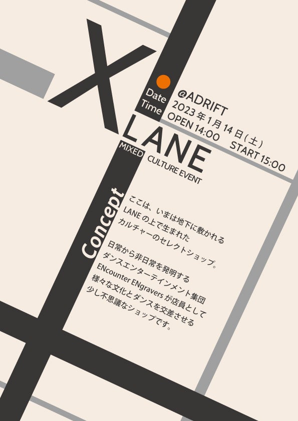 ENEN合同会社(東京都渋谷区、以下ENEN)が運営するダンスチームENcounter ENgraversは「カルチャーのセレクトショップ」をコンセプトにしたダンスイベントを下北線路街にあるADRIFTにて1月14日(土)に開催いたします。
