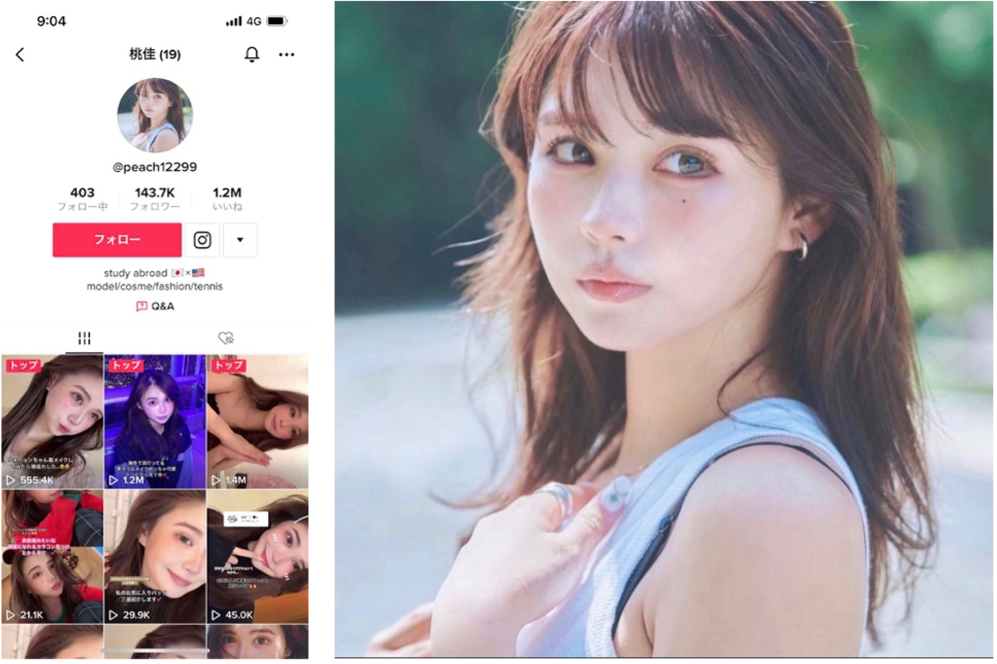 例:弊社所属TikTokクリエイター 桃佳