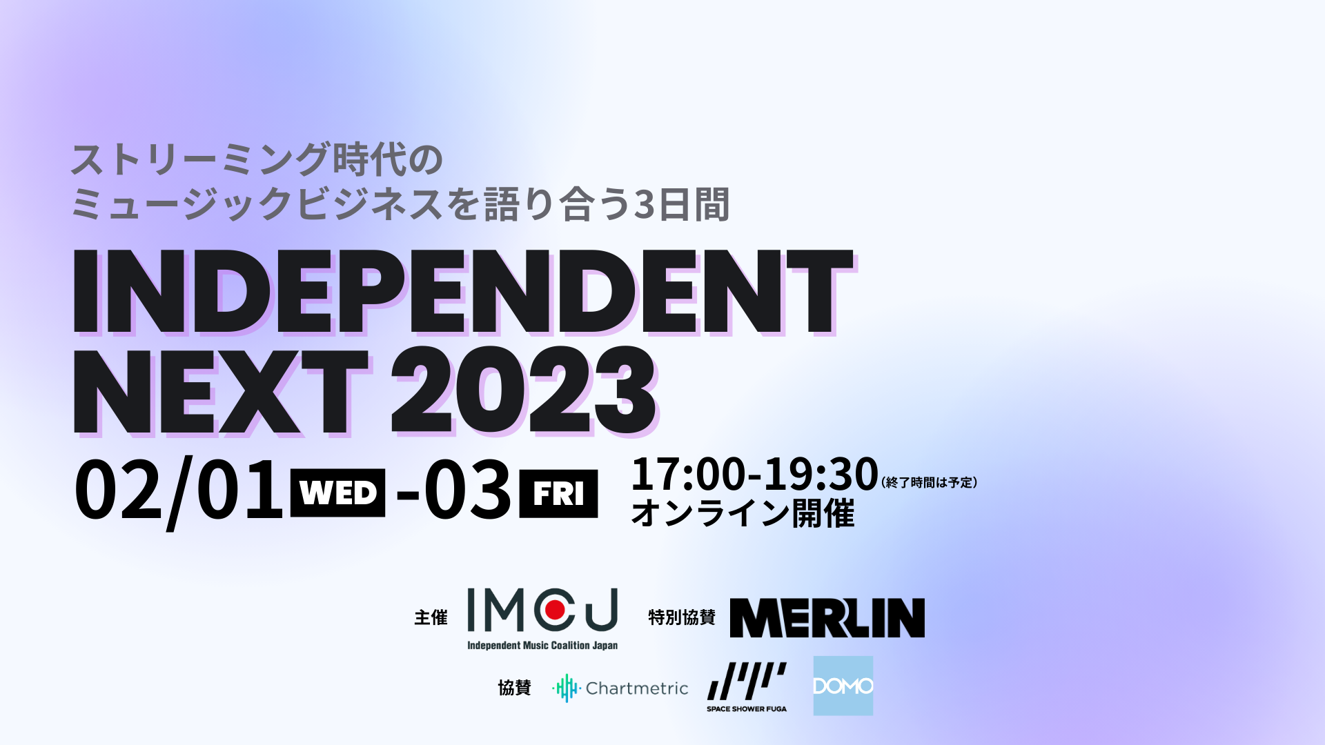 インディペンデントレコード事業者及びアーティストのグローバル市場での活動を支援する一般社団法人IMCJでは、2023年2月1日〜3日の3日間、レコード&ミュージックビジネスのオンラインカンファレンス「Independent Next 2023」を開催します。