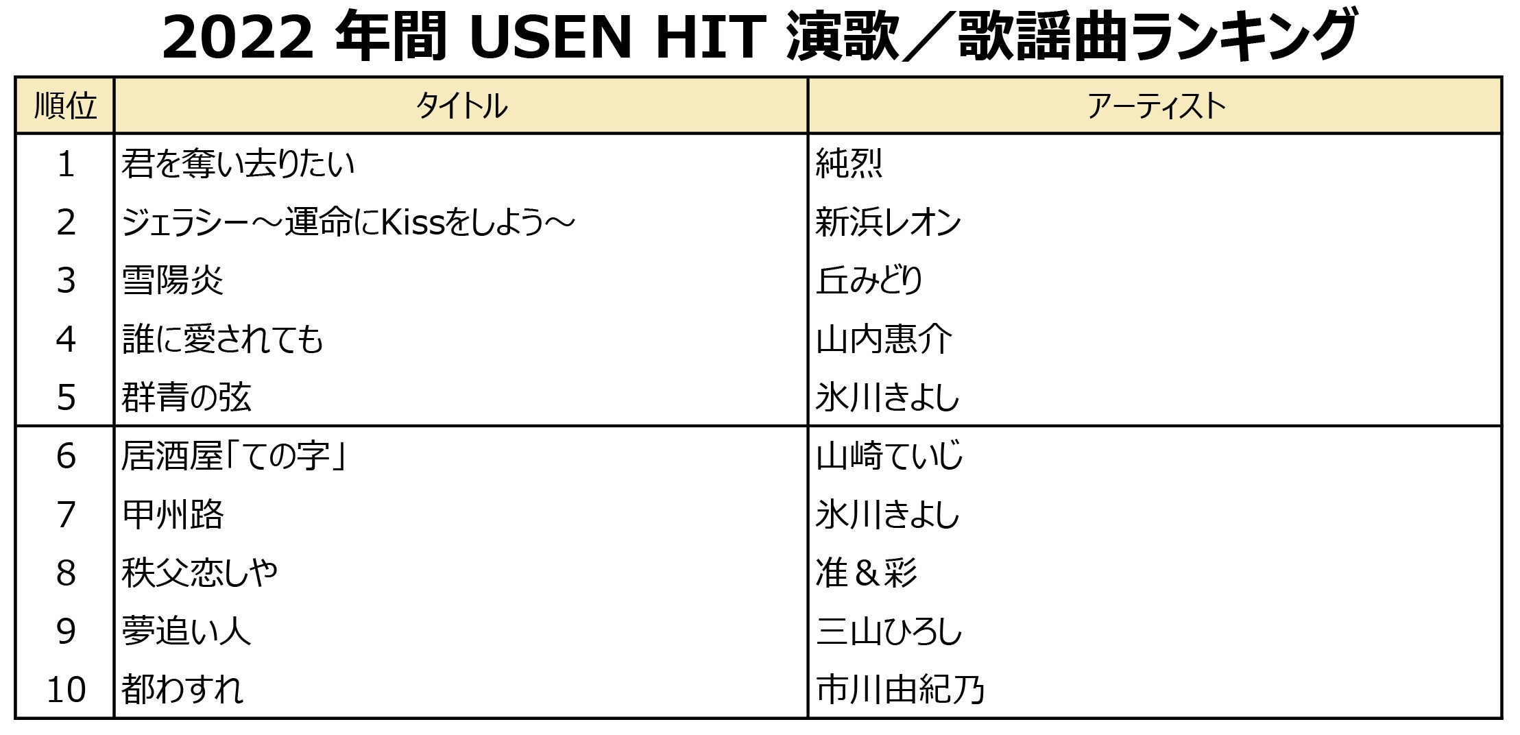 - 2022 年間 USEN HIT 演歌/歌謡曲ランキング