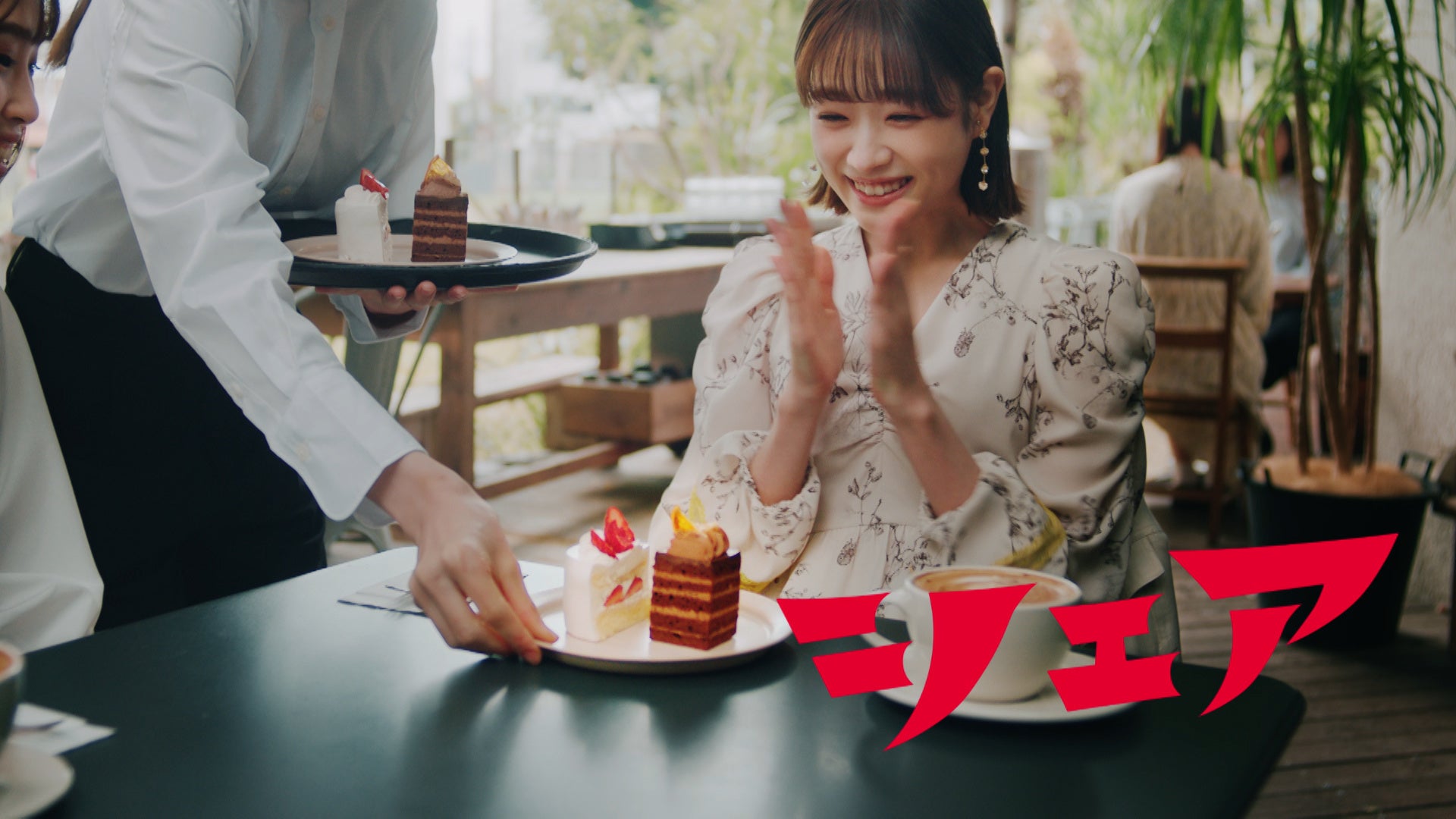 | カフェで友人とケーキを選ぶ髙橋ひかるさん。「じゃあ私こっち!」 友人と半分ずつにシェアされたケーキが届き、喜ぶ髙橋さん。…そこに「シェア!」の声が響きます。 ラテアートを写真に撮りSNSでシェアする髙橋さん。「かわいい~!」…また「シェア!」の声が響きます。友人とイヤホンで音楽をシェアする髙橋さん。…さらに「シェア!」 献血会場で受付をする髙橋さん。そこに「シェア」の声の主であるウルトラマンが現れ、献血にむかう髙橋さんを見守ります。「世の中なにかとシェアの時代。献血は、生きる力をシェアできる。」と、献血は「生きる力を、シェアすること」であることを髙橋さんのメッセージで伝えます。 |