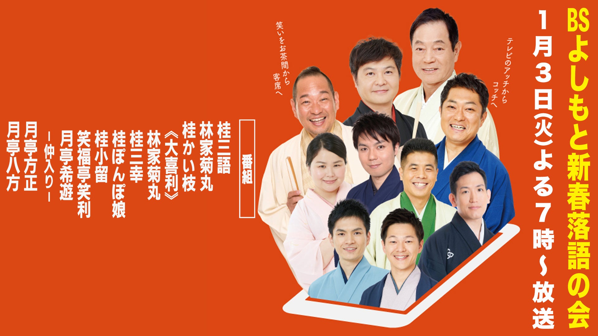 この度、BSよしもとでは、月亭八方、桂かい枝、林家菊丸、月亭方正、桂三語ら吉本の落語家10人が出演する「BSよしもと新春落語の会」を新年1月3日(火)よる7時から放送いたします。