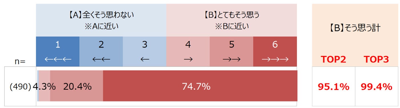 がん疾患啓発をエンターテイメントを用いて行うことについては、TOP3【4-6と回答】で99%の人が有効だと回答しています。TOP2【5-6と回答】で見ても95%と高いスコアとなっています。