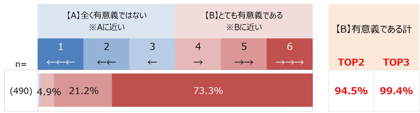 チャリティーライブが、有意義だと回答した人は(TOP3【4-6と回答】)が99%を占めました。TOP2【5-6と回答】で見ても95%が有意義だと感じています。