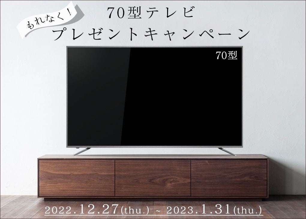 家具・インテリアショップの運営、ドラマの美術協力など手掛けるリグナ株式会社(本社:東京都新宿区、以下 リグナ)は、2022年12月27日(火)より、直営店3店舗(リグナテラス東京、長野店、藤越)およびリグナ公式オンラインショップにて70型テレビプレゼントキャンペーンを順次開催します。