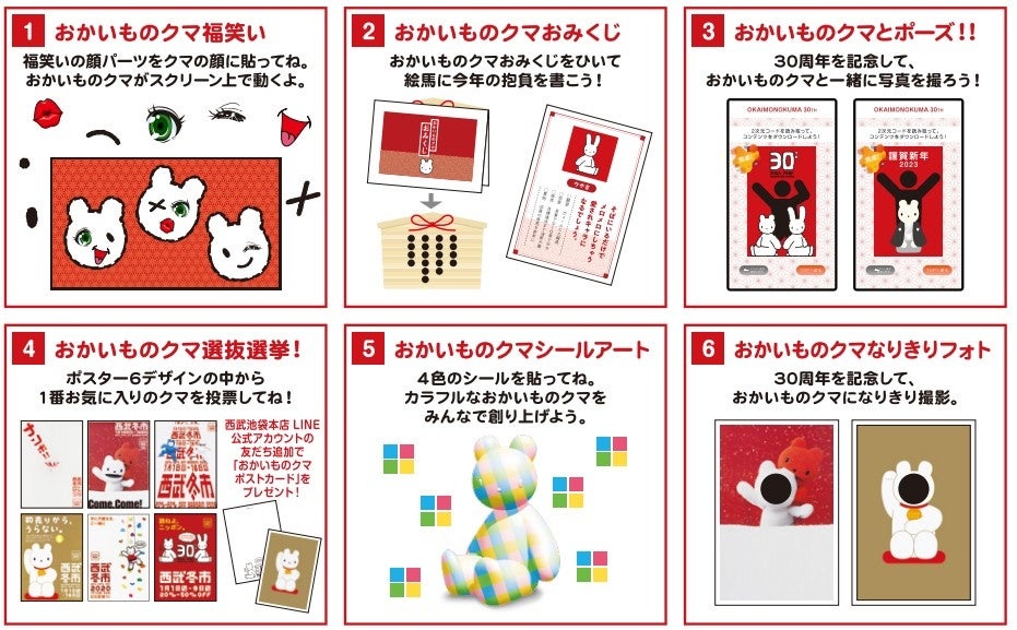・おかいものクマ福笑い・おかいものクマおみくじ・おかいものクマデジタル記念撮影