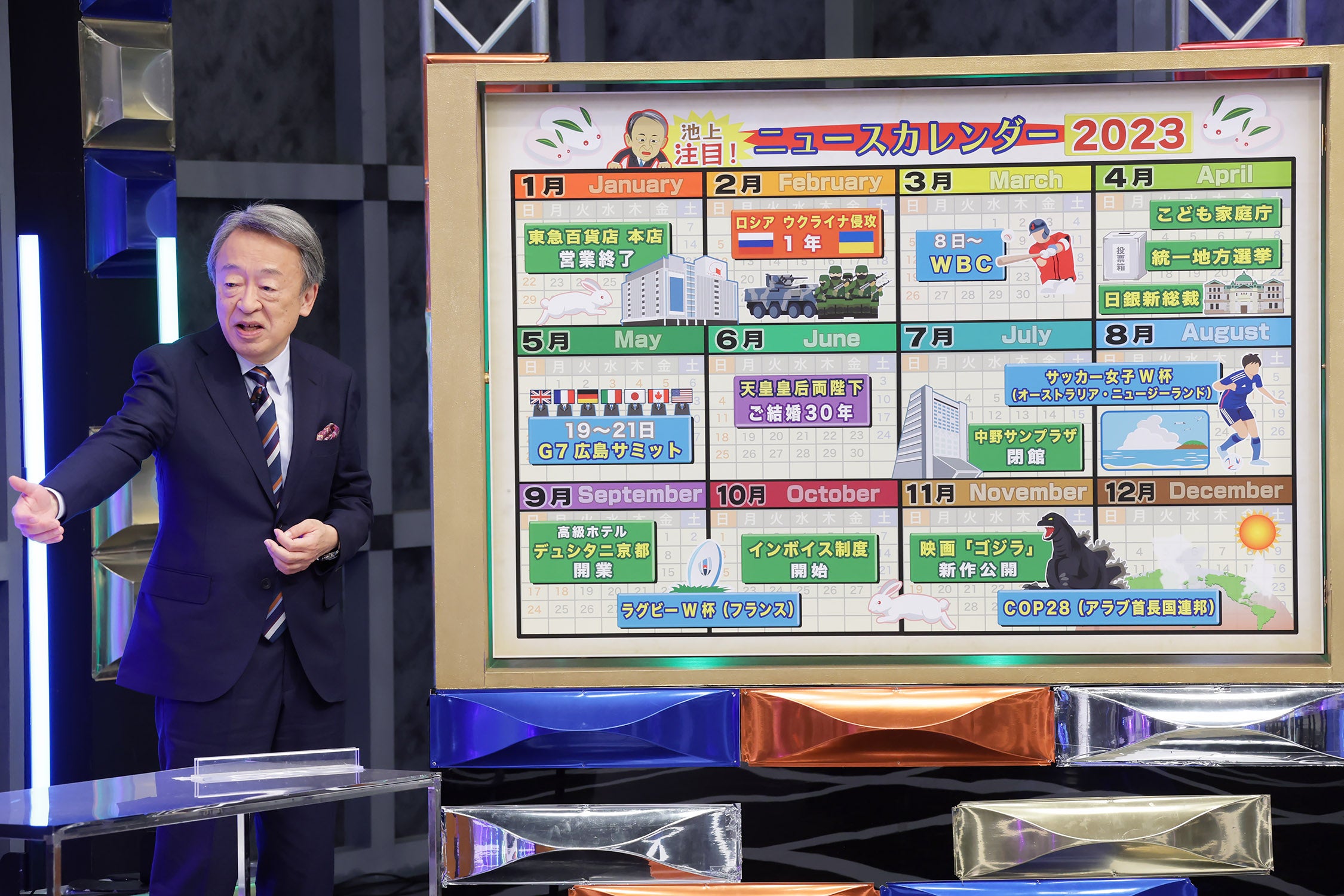 2023年はどんな1年になるのか。池上彰が特製のカレンダーで深掘り解説。さらにニッポンが抱える数々の“問題”を解決する最新技術に製品、さらに新しい働き方や命を守るシステムまで続々登場。池上彰も驚いた!“近未来”のニッポンの姿とは・・・。