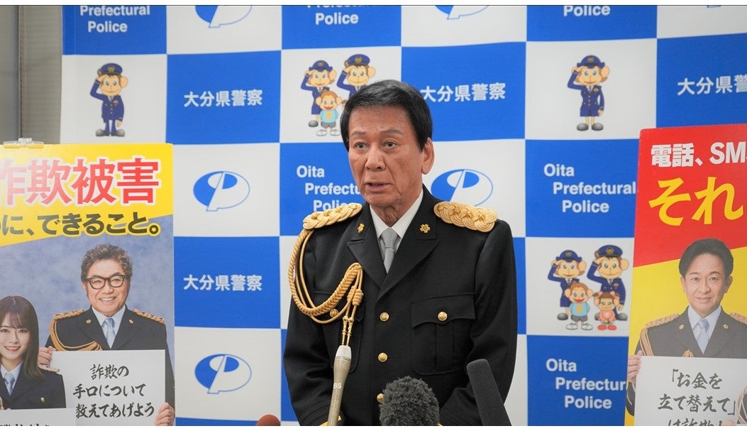 この度、警察庁特別防犯対策監の杉良太郎氏が、大分県警察本部を訪問しました。大分県内でも被害額が前年よりも増加していることを受けて、杉対策監は、「“自分は騙されないから大丈夫”が一番危険です!」と、県民へ向けて呼び掛けました。