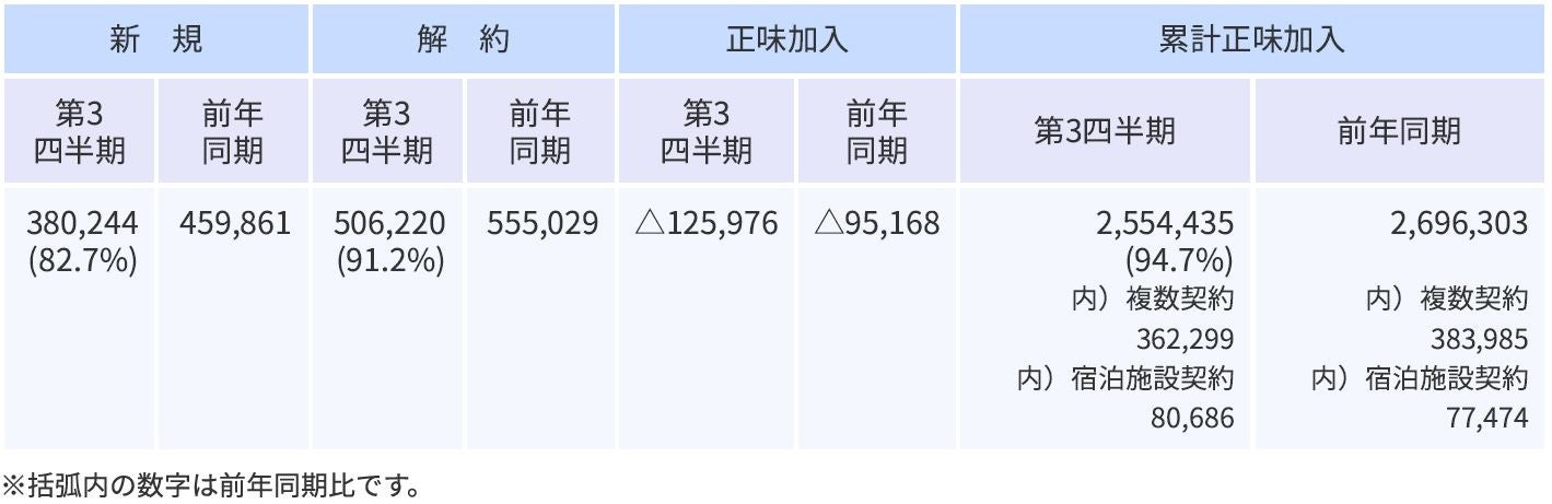 ※2:宿泊施設の客室で視聴するための宿泊施設事業者との契約については、視聴料金を個別に定めており、当該宿泊施設における契約客室の累計正味加入件(室)数は、月末累計正味加入件数に含めております。
