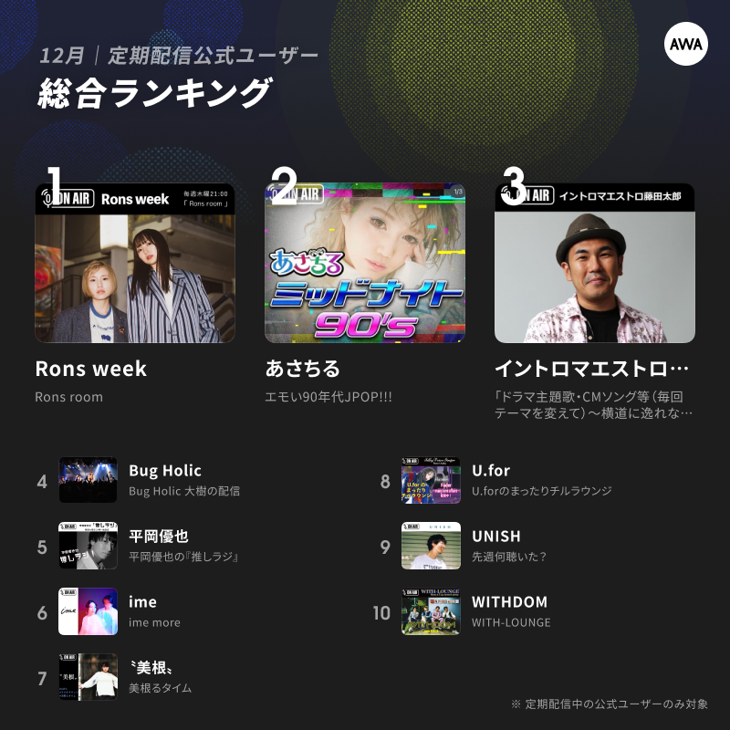 ■2022年12月定期配信AWAラウンジ人気ランキングTOP10