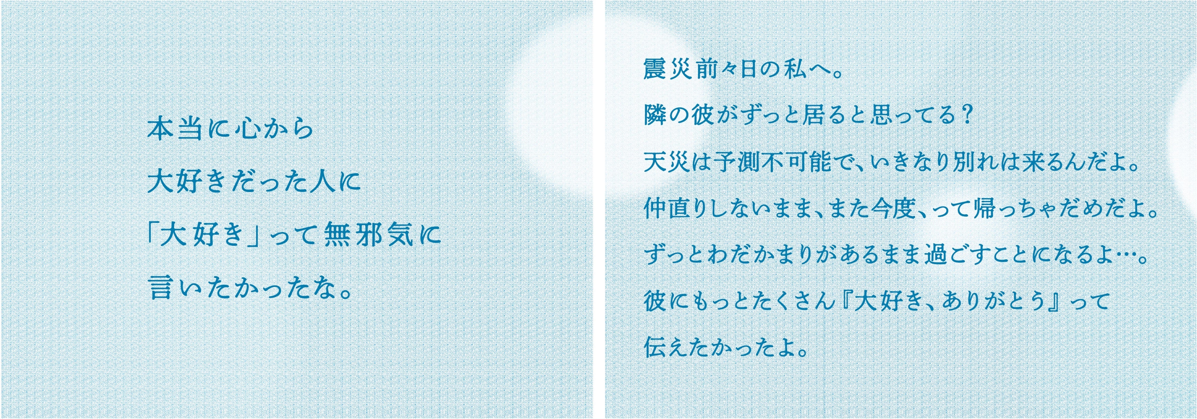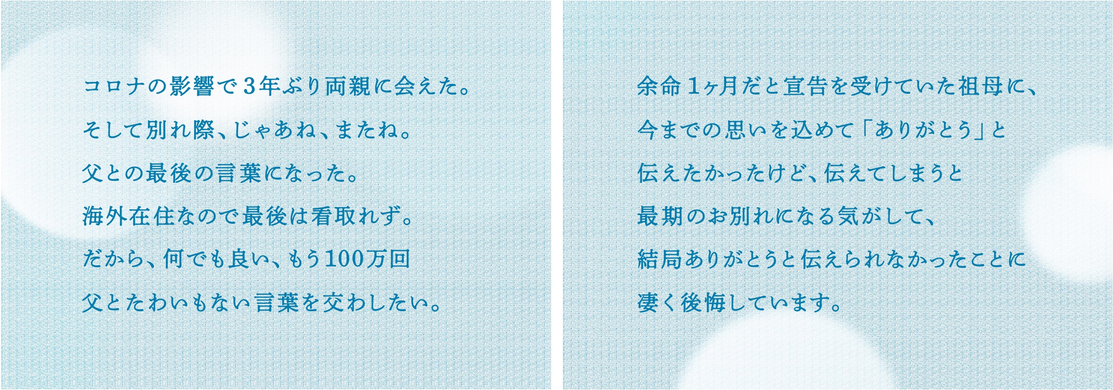 誰しもが抱える「言えばよかった」と思う“切なさ”と、愛する人を想う“温かさ‘を改めて思い起こさせるために。