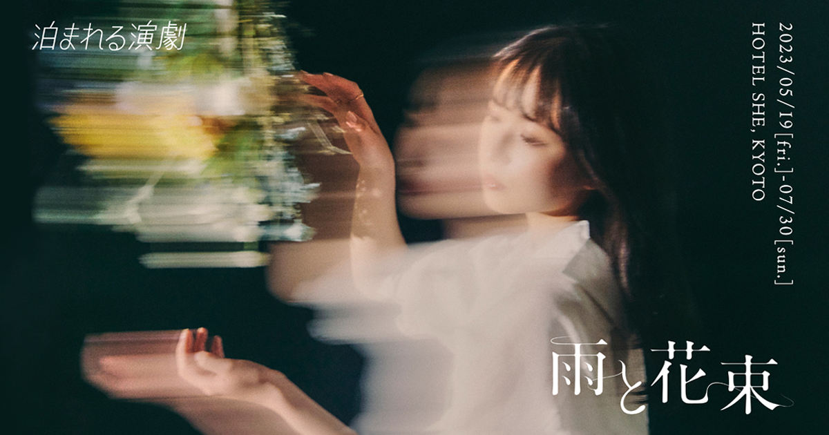 ホテルに泊まりながら演劇を楽しむ”新感覚ナイトエンターテイメント” 泊まれる演劇は、HOTEL SHE, KYOTO(京都府・京都市)にて、『雨と花束』を上演します。期間は2023年5月19日(金)〜7月30日(日)。チケットの一次抽選は本日1月9日(月)よりスタート。