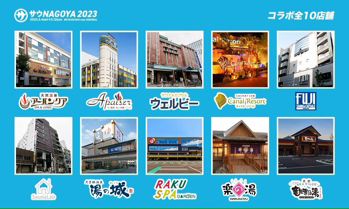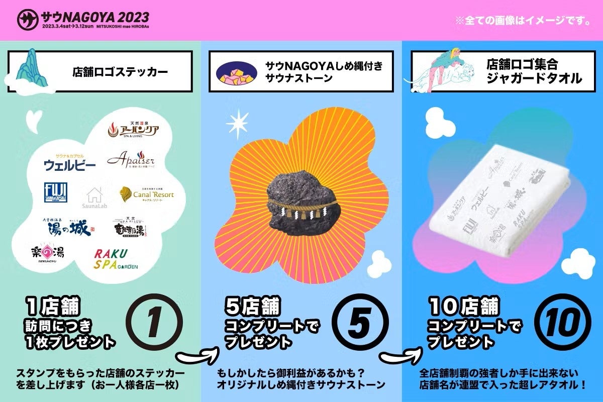 さらに、3月4日(土)~ 3月31日(金) には、名古屋の人気サウナ店10店舗とのコラボ企画「サウNAGOYAスタンプラリー」を実施!各店舗を巡って、設置されているスタンプを集めると集めた数に応じて賞品をプレゼント!