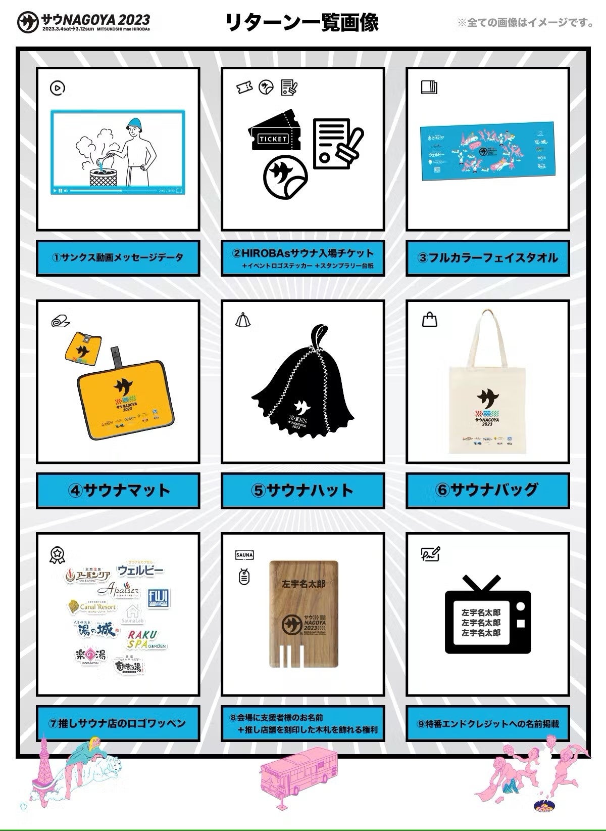 公約:名古屋の人気サウナ店10店舗 全面協力!イベント限定オリジナルグッズを販売します!!