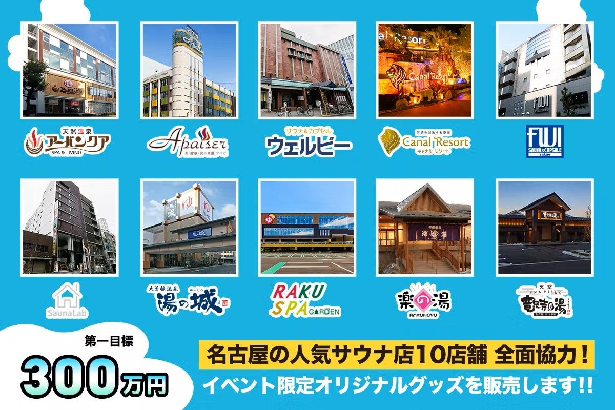 今回のクラウドファンディングでは名古屋の人気サウナ店10店舗全面協力のもとイベント限定オリジナルグッズを 販売します。