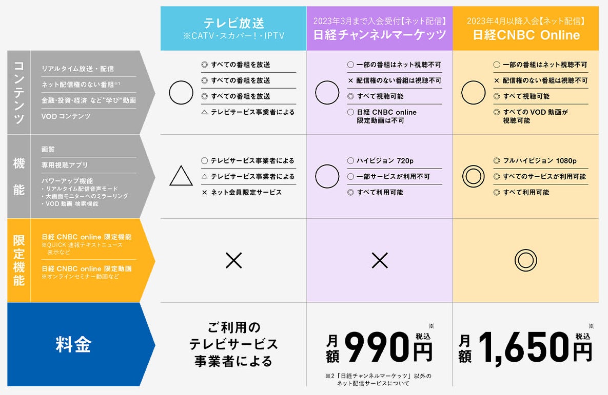 • 2023年4月以降の提供料金と日経CNBC サービス比較