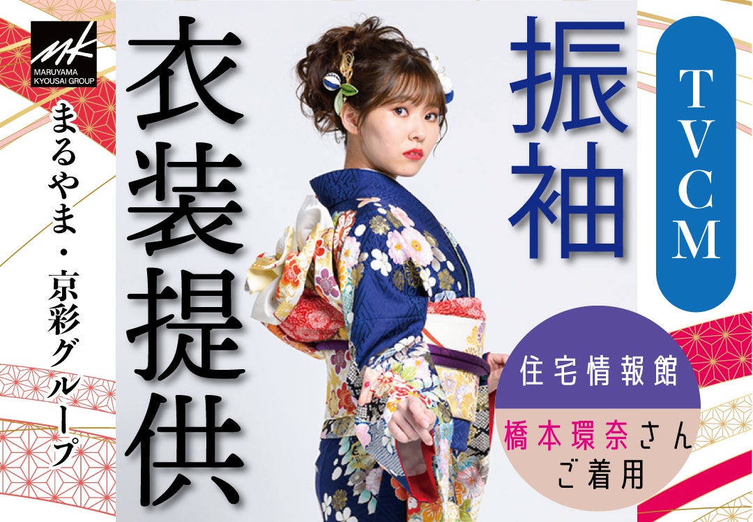まるやま・京彩グループは、「住宅情報館」の2023年初詣時期のテレビCM『住宅情報館 2023年 初詣編』に、当グループオリジナル振袖を衣装提供いたしました。CMでは振袖を女優・タレントとして大活躍の橋本環奈さんがご着用されています。