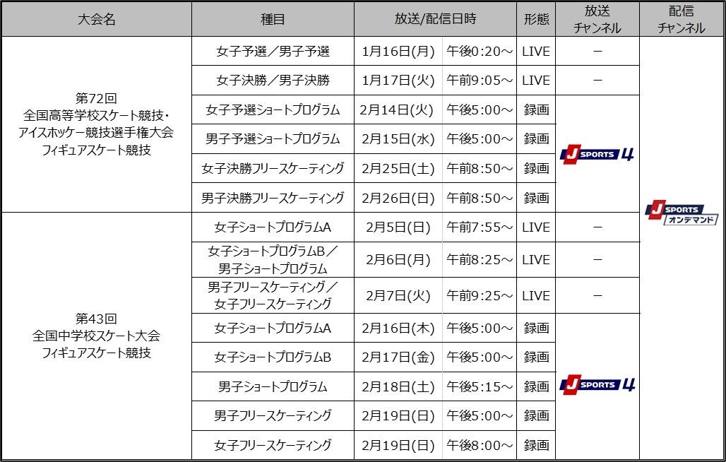 <全国高等学校スケート競技・アイスホッケー競技選手権大会 フィギュアスケート競技、全国中学校スケート大会フィギュア競技 放送・配信概要>