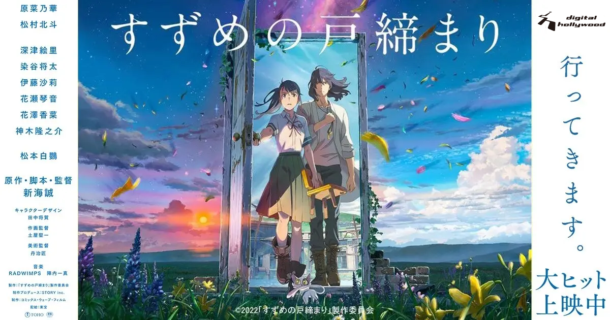 『すずめの戸締まり』は、新海誠監督最新作・長編アニメーション映画で、日本各地の廃墟を舞台に、災いの元となる“扉”を閉めていく少女・すずめの解放と成長を描く現代の冒険物語です。2022年11月11日(金)に全国公開し、2023年1月に入り、観客動員約913万人、興行収入121億円を突破するなど、今も尚大ヒット上映中です。