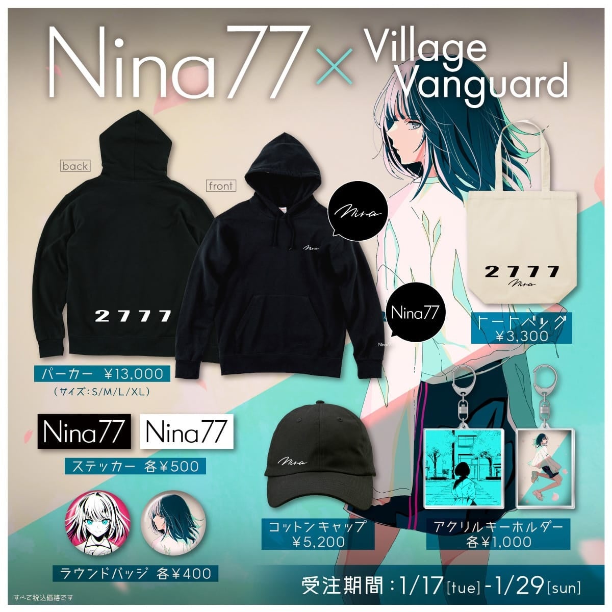 2023年1月17日(火)より、透明感のあるボーカルと、どこか切なさを感じさせるサウンドに中毒者が増殖中の【Nina77】とヴィレッジヴァンガードの限定コラボグッズがオンラインストアにて発売決定!!
