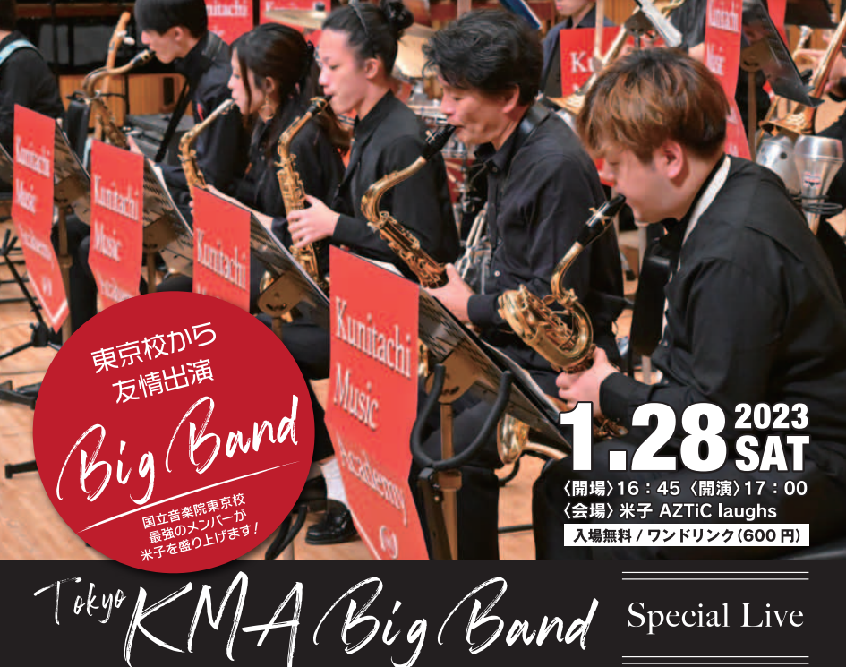KMA BIG BANDのピックアップメンバーに指導講師の池田公生(ジャズピアノ)、堂本雅樹(トロンボーン)、足塚先生(ジャズギター)をゲストに迎えた豪華なジャズセッションを予定しています。