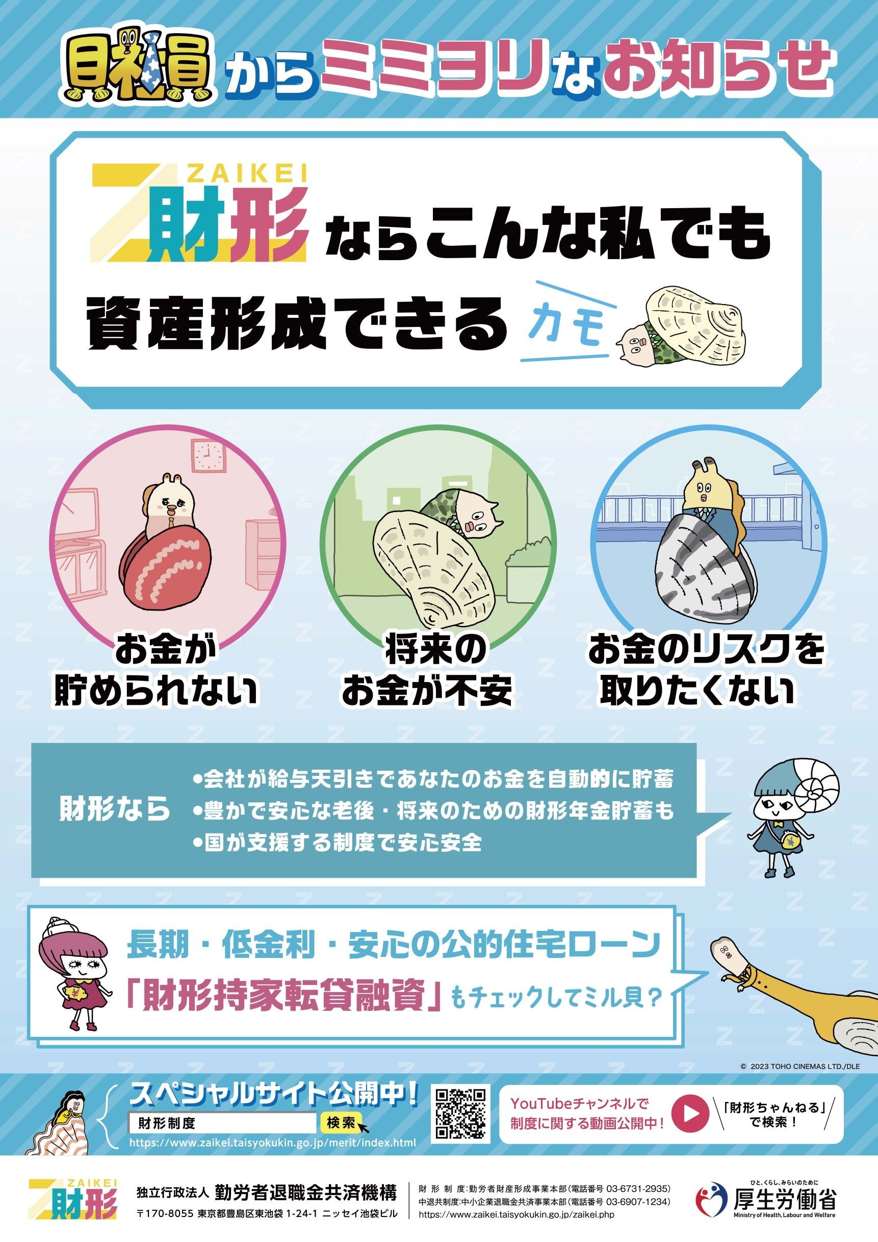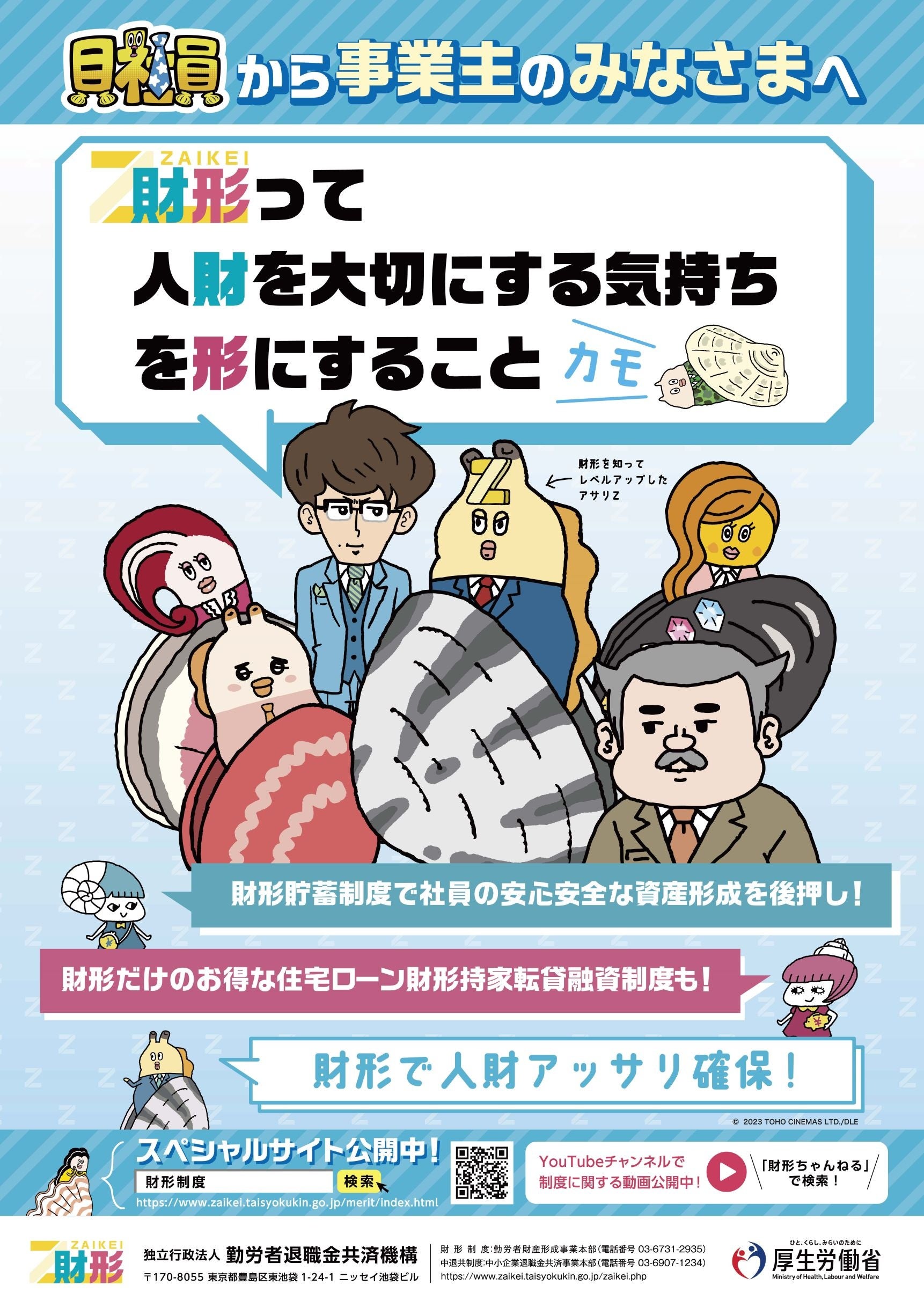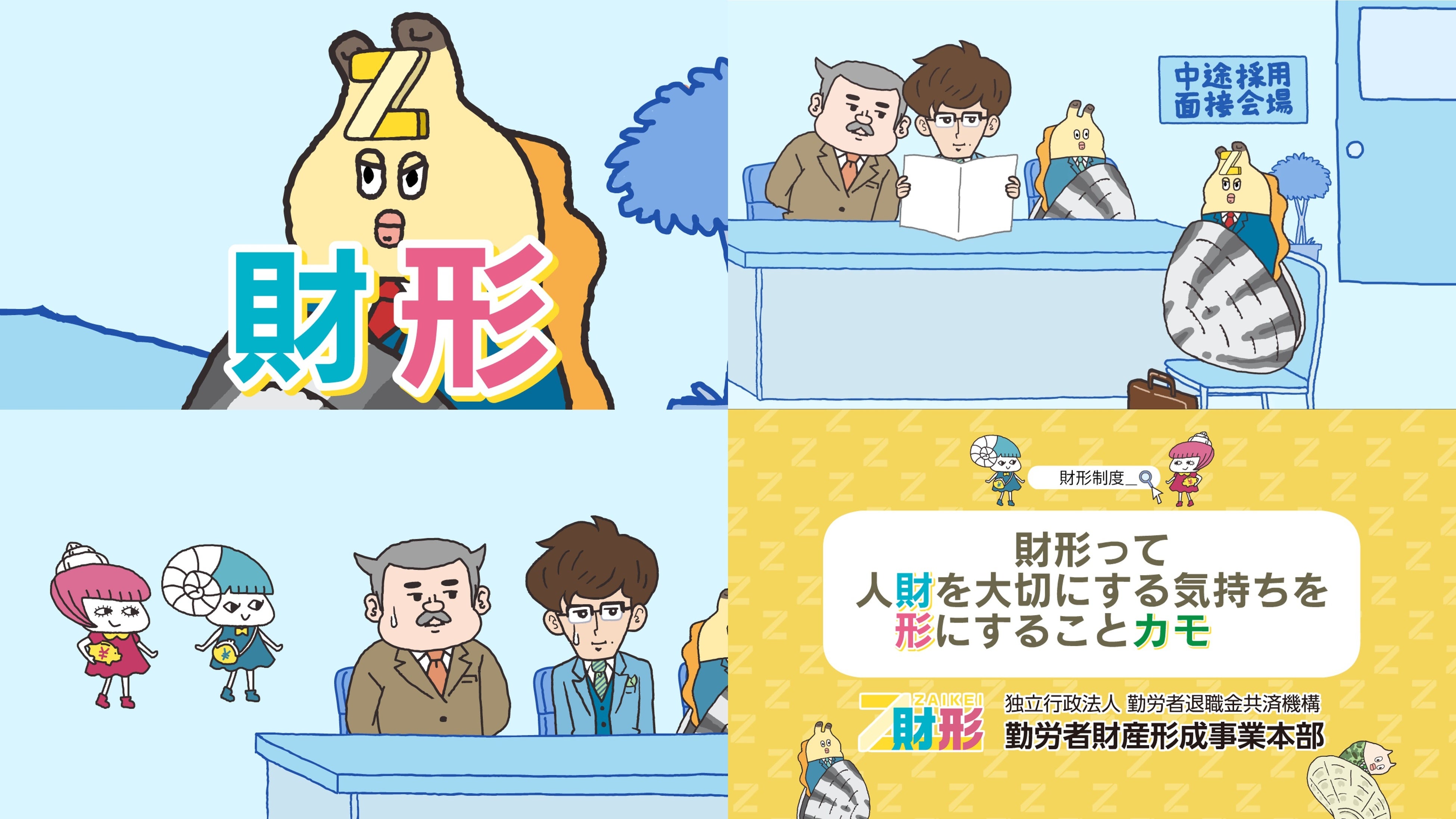 今回の企画では、『ダメ会社員あるある』を貝の社員『貝社員』が哀愁漂う歌とコントでお届けする人気コメディアニメ『貝社員』とのコラボを実施しました。「財形制度」を紹介するスペシャルムービーの公開をはじめ、テレビCM・WEB広告・ポスターなど、各種プロモーションも合わせて行い、親しみやすく、楽しみながら「財形制度」を知ることができる機会を提供します。
